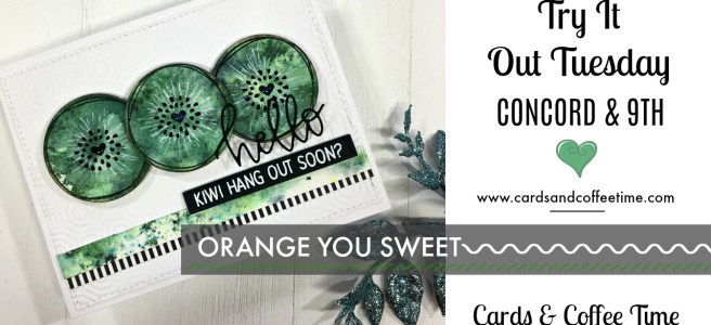 Hello and Happy Tuesday Crafty Friends! Today I have to say I was in a green mood and wanted to create something a bit different. I was debating on Limes or Kiwi's:) Guess what? Kiwi's won, I never made a Kiwi card and was excited to try it out!! I created a card using the … Continue reading Try It Out Tuesday – Concord & 9th Orange You Sweet