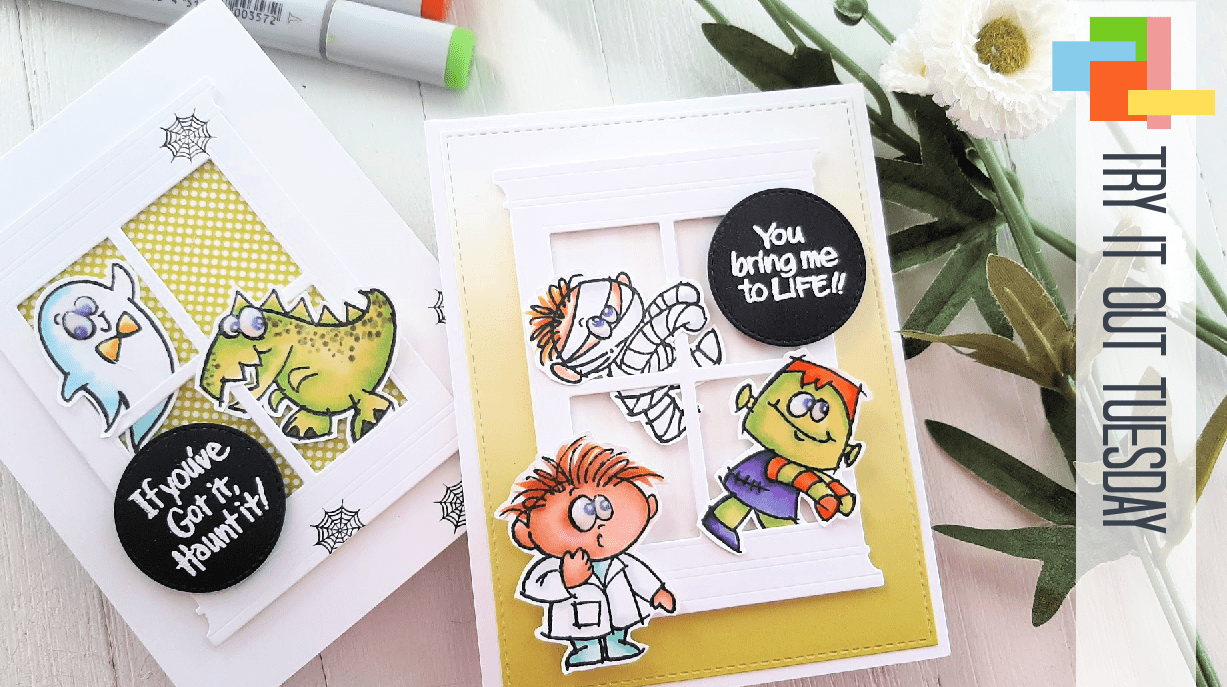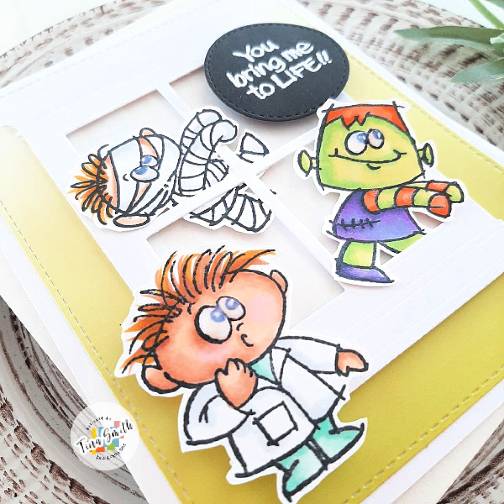 Hello and Happy Tuesday Crafty Friends! I am excited to share with you two fun Halloween cards with the Stampendous! Bring to Life stamp set. Love the adorable characters in this set and the sentiments are too cute to spook!! I hope you enjoy my project!