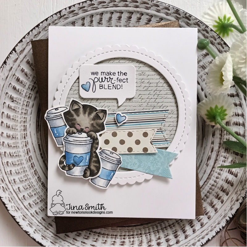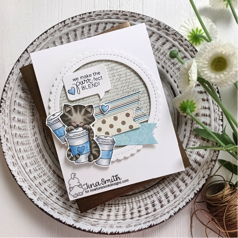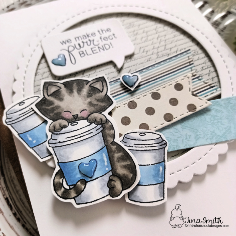Newton is one happy kitty with his cup of coffee! Your card is adorable and i love the colors you chose ❤