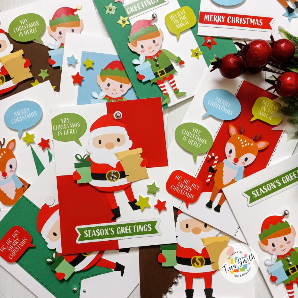 Hello Crafty Friends! Today I am sharing a Spellbinders Card Kit that is especially made for Beginners! This kit has everything you need to create 10 cards, quick and easy!! No stamping or die cutting just creating and that means it is great for kids, stocking stuffers, beginner card makers and yes! great for travel too! Everything you need is in here:) It’s called the Santa & Friends Beginner Card Kit! Check it out!