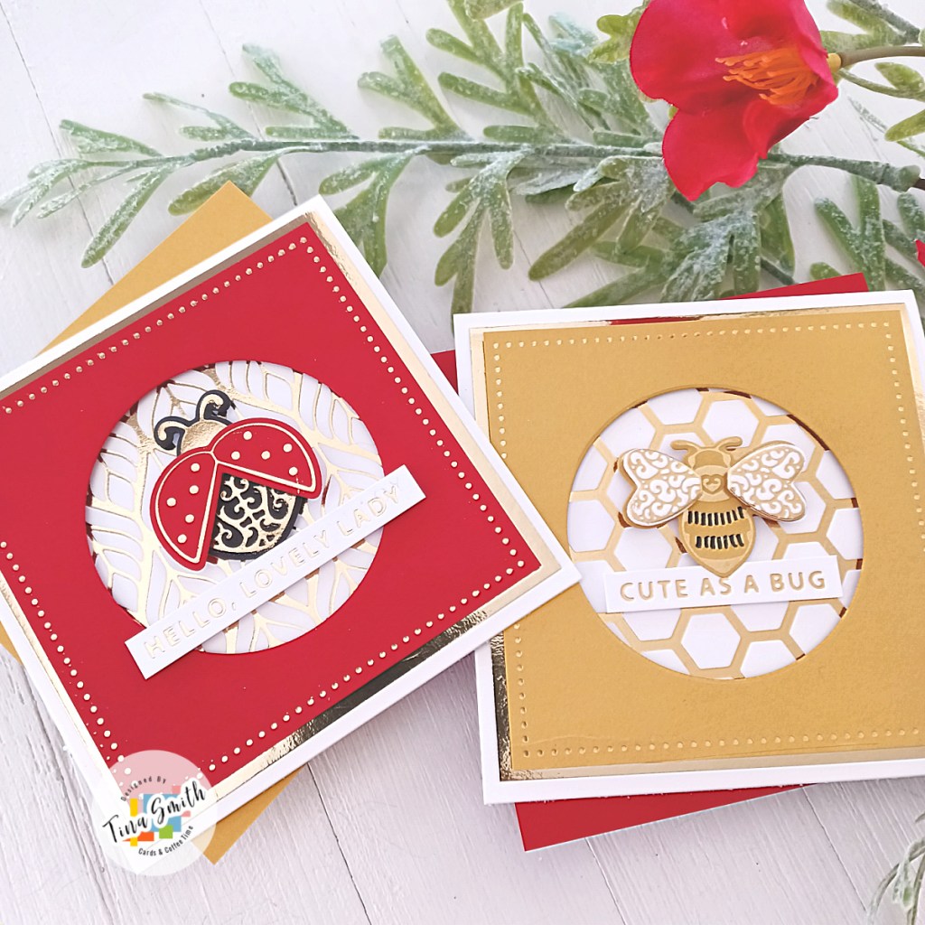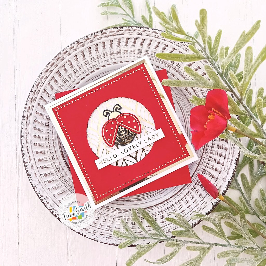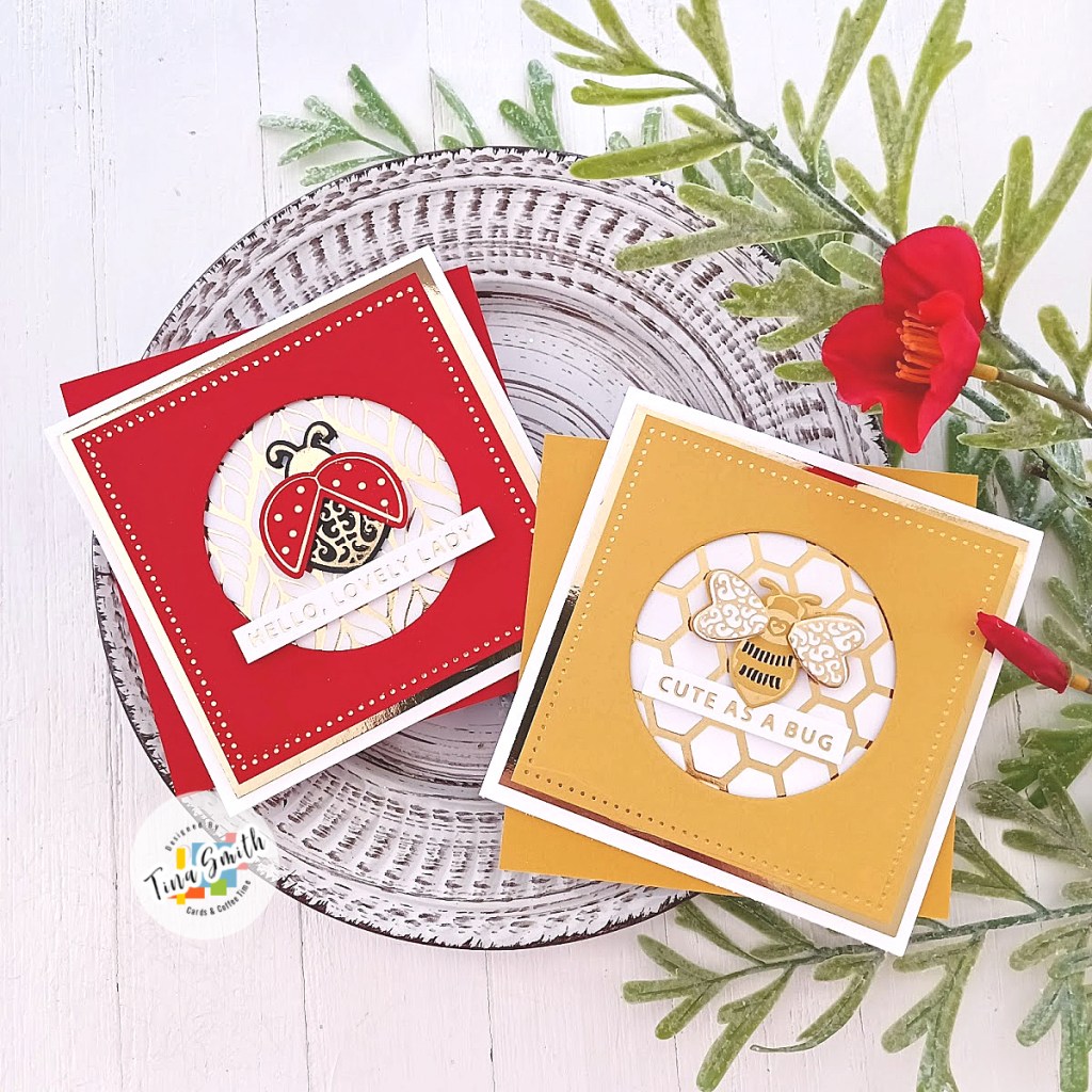 Hello and Happy Sunday Crafty Friends! Today I have been invited to share with you a brand new collection by Becca Feeken called Sweet Cardlets This collection features beautiful Glimmer plates perfect for creating beautiful and elegant cards. My project features two sets, the Lovely Ladybug APG Glimmer Plate set and the Just Bee-cause APG Glimmer Plate set that I used to create a beautifully foiled card using my Glimmer Hot Foiling System. I love how it turned out:)