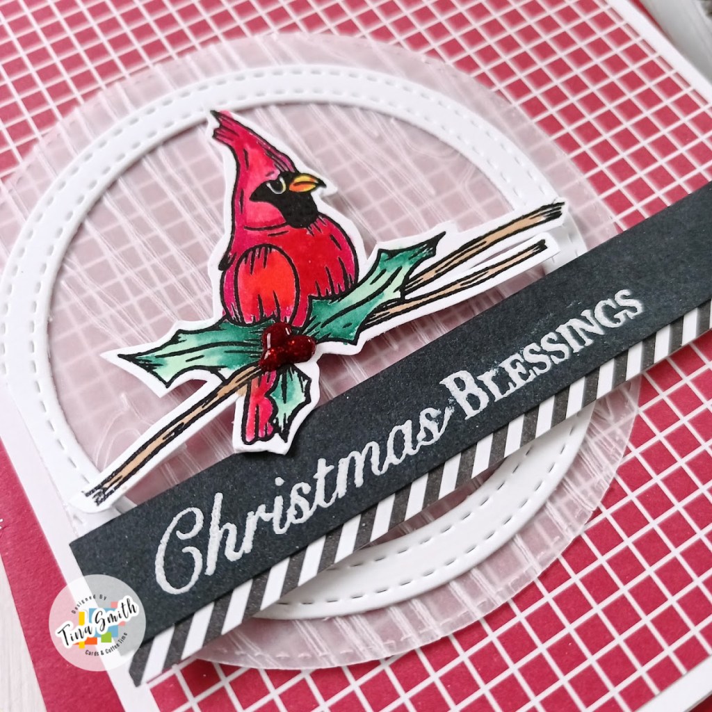 Hello and Happy Friday Crafty Friends! I have been invited to play with some brand new products by a company called Scrappy Tails Crafts. This is an online shop that has just rolled out some amazing stamps & dies for their 2020 product launch. The owner is Sabrina Leavell created some beautiful stamps and her products are so much fun! Today I am super excited to create a Christmas Card with the Scrappy Tails Cardinal Blessings Stamp I love how it turned out and hope you do too!