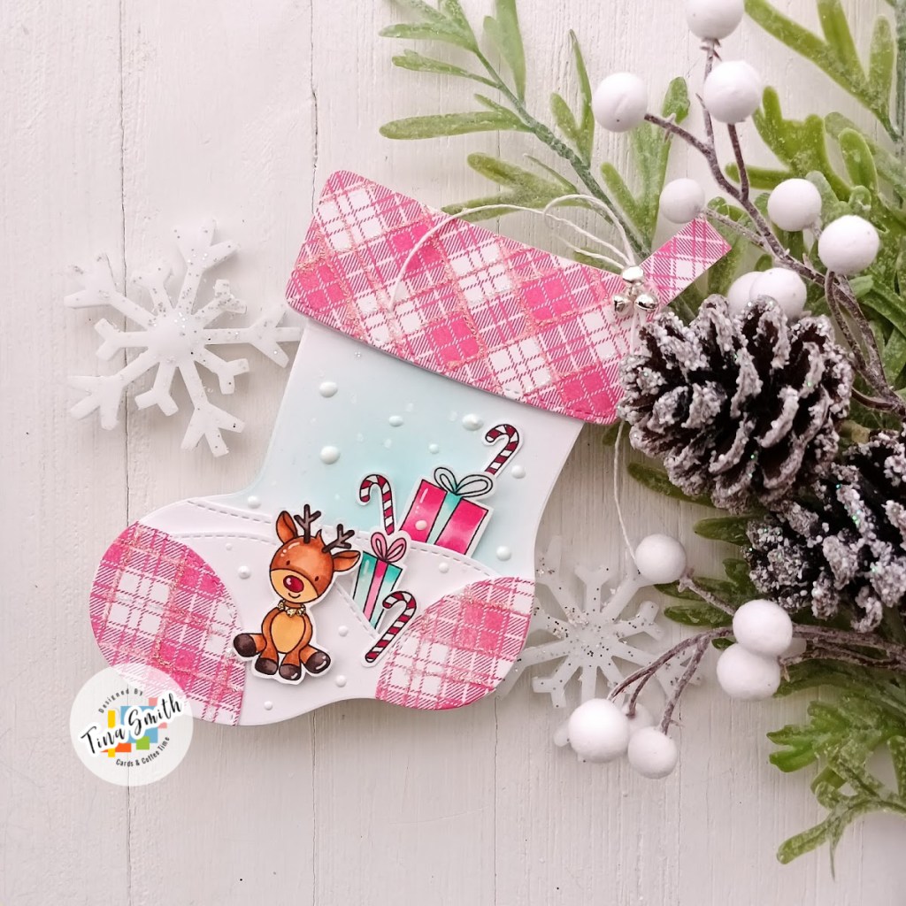 Hello and Happy Monday Crafty Friends! I am starting the week off with Day 18 of my Countdown 2 Christmas Series. I am using a stocking shaped A2 die sets from Sunny Studio. The Sunny Studio – Santa’s Stocking A2 Die Set . I think this set is fun and versatile:) It can be used as a card, on an A2 card or even a Christmas Tag! I chose a stocking card today, I am loving the pinks and teals this season and am back with some bright cheery colors! I hope you enjoy!