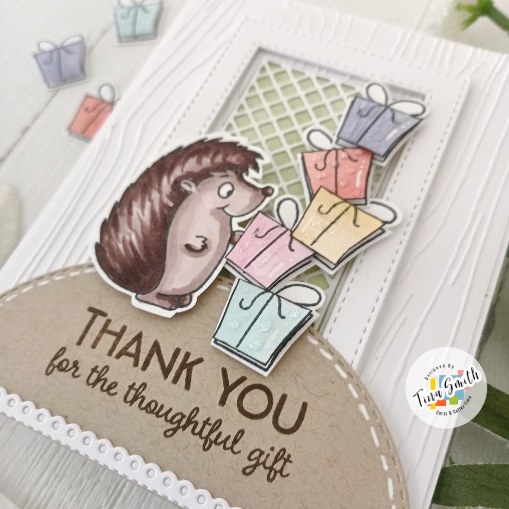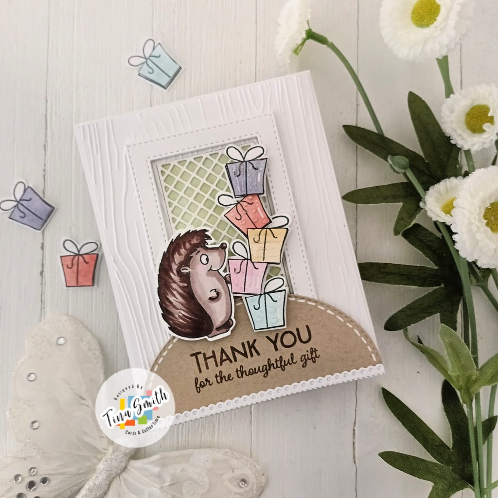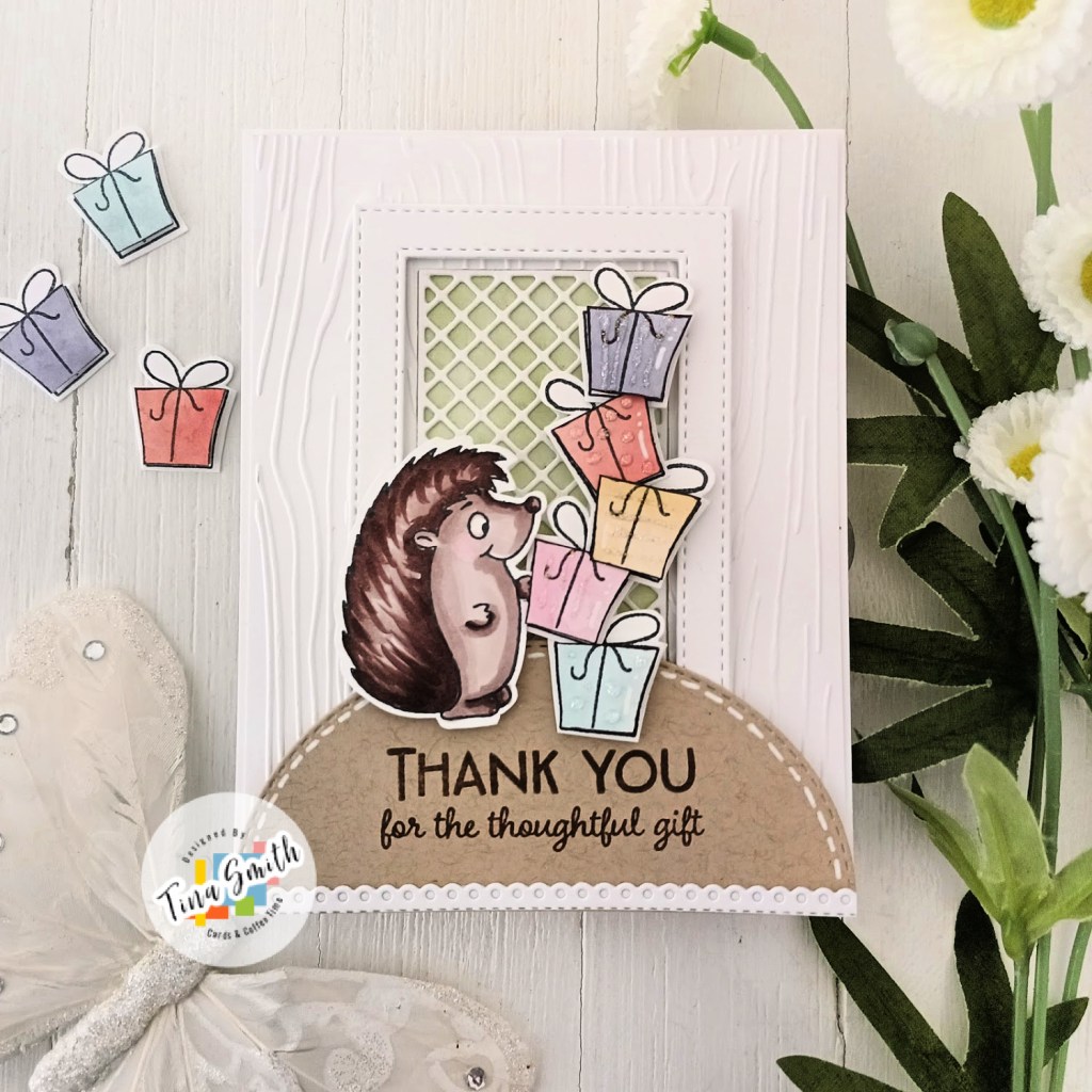 Hello and Happy Tuesday crafty Friends! Today I am sharing a Thank You Card idea that would be great for after the Holiday Thank You cards:) I am featuring a stamp called Hedgehog with Gifts from Gerda Steiner Designs it’s new over at the Gerda Steiner Designs Shop! I love the fun hedgehogs, the customizable sentiments and the fun hashtags! I hope you like it!