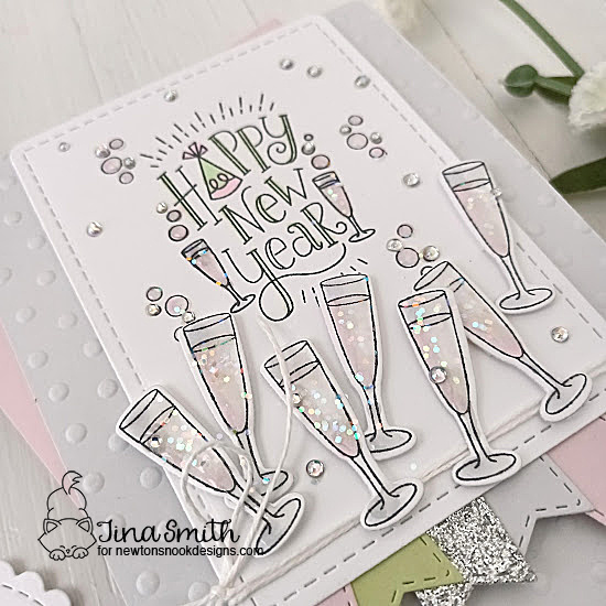 The Happy New Year stamp set is part of the NEW December Release it is small but creates big impact on your card projects! I paired it with the NND Newton’s New Year Stamp set and Coordinating Dies to add some extra champagne and bubbles:) I added some stitched banners with the Banner Die Trio Die set along the bottom of a panel I created with the Frames and Flags Die Set. The color combination is soft as I was going for a sparkly pink champagne look that just makes me smile!! I hope you like it!