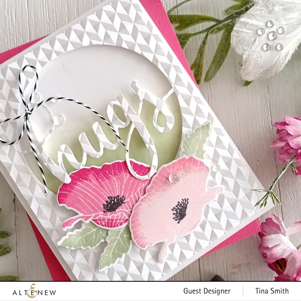 Hello Crafty Friends! I am super excited to be part of the Altenew Mini Delight: Poppy Stamp & Die Set Instagram Hop. Altenew is celebrating the New Release of the Mini Delight: Poppy Stamp & Die Set with an Instagram Hop:) Yay! I hope you can head on over to Instagram and join in the fun, the Altenewllc IG Page is a great place to start and gives all the details!! There are lots of inspirational projects using this small but mighty stamp & die set and a Giveaway for a chance to win some crafty goodness:) Have Fun!!