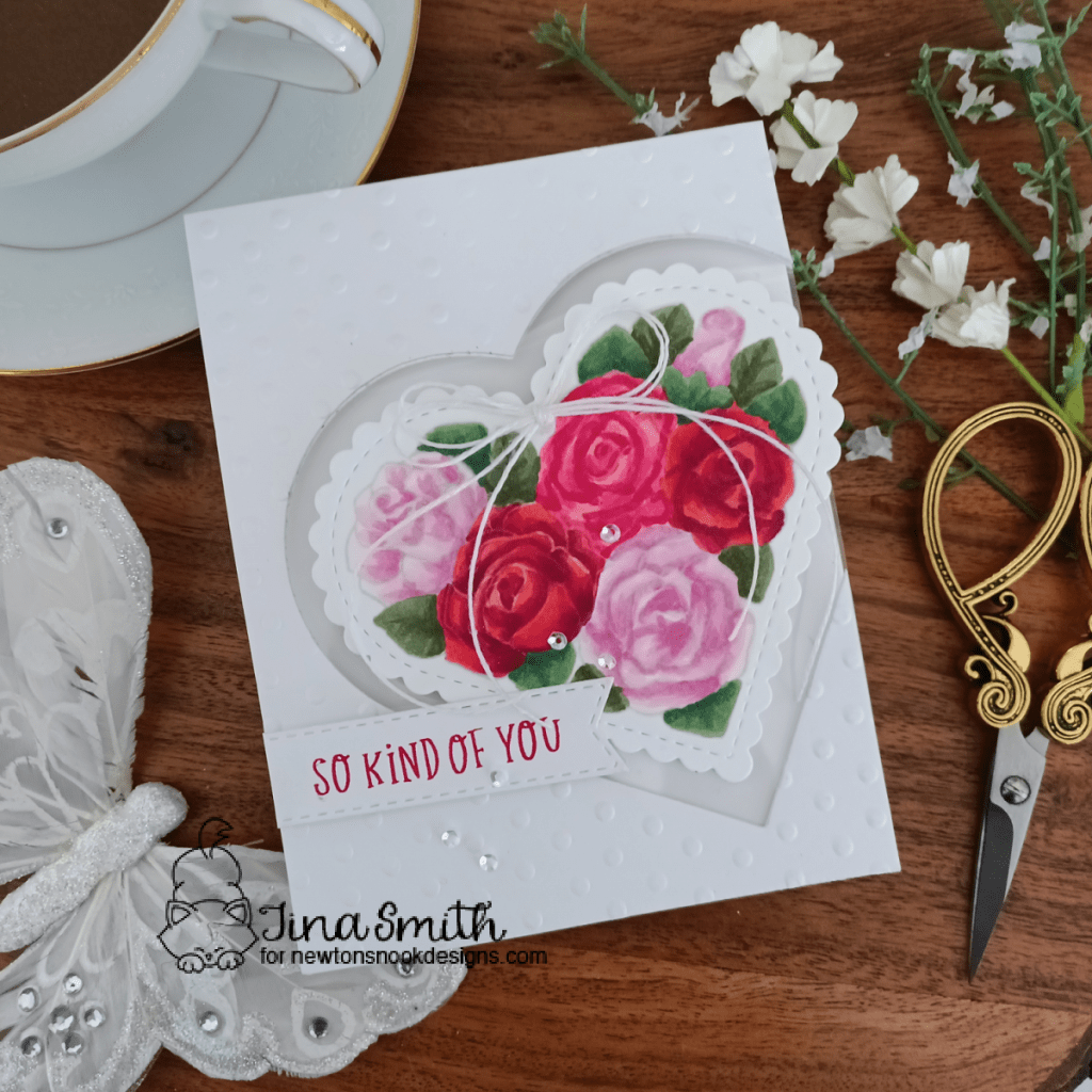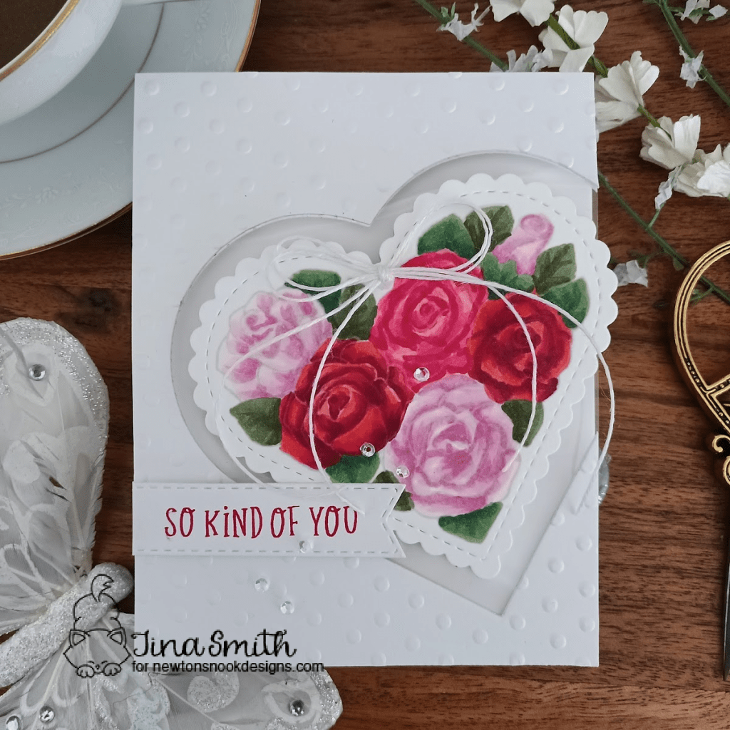 I am excited to share a card using the beautiful Heartfelt Roses Stamp Set. The sentiments fit perfectly in the Banner Trio Die set and the New Heart Frames Die Set will steal your heart…literally! They coordinate with the Heartfelt Thanks set and are perfect for creating layered valentines:) I hope you get a chance to visit the Newton’s Nook Design’s Shop to check out all the amazing release!
