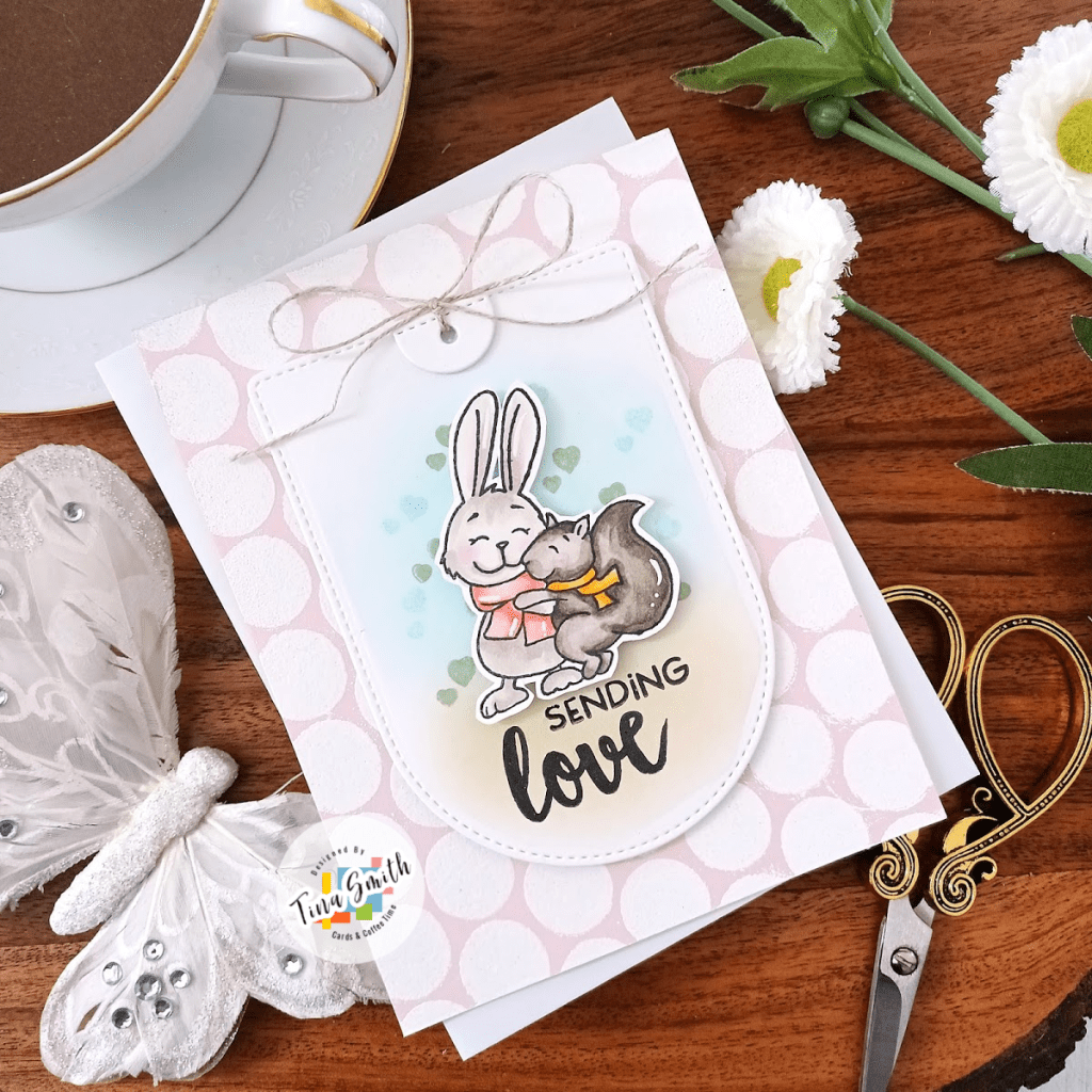 Hello and Happy Tuesday Crafty Friends! Today I am using the Gerda Steiner Designs – Sending Love stamp set. I have been loving soft colors lately so I stayed true to my trend for my card project. I used pink cardstock for my card base and embossed it with the Paper Rose Mega Spot stencil, my Versamark Ink Pad and white embossing powder. This adorable sending love card would be perfect for a just because card or even a valentine to a loved one:) I hope you enjoy it!