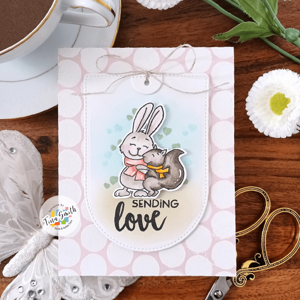 A sending love card with the Gerda Steiner Designs Sending Hugs stamp!