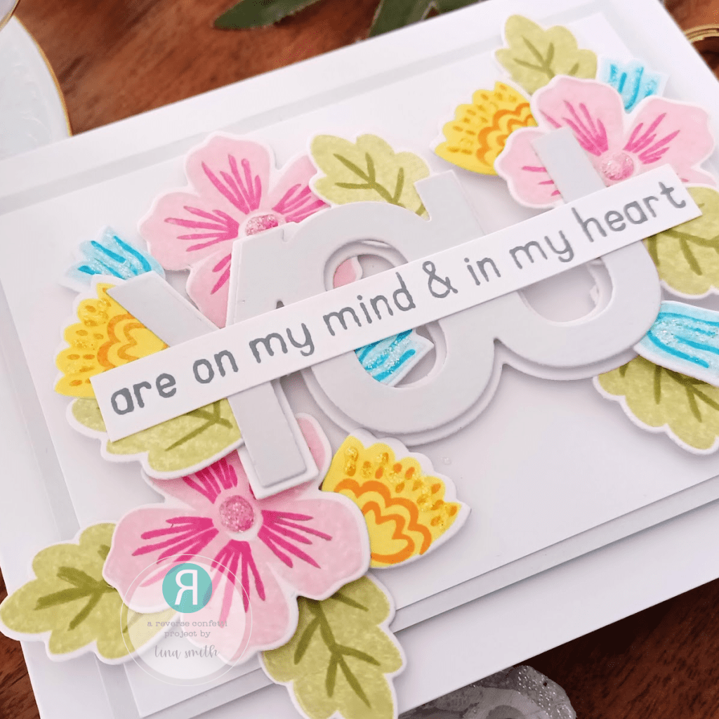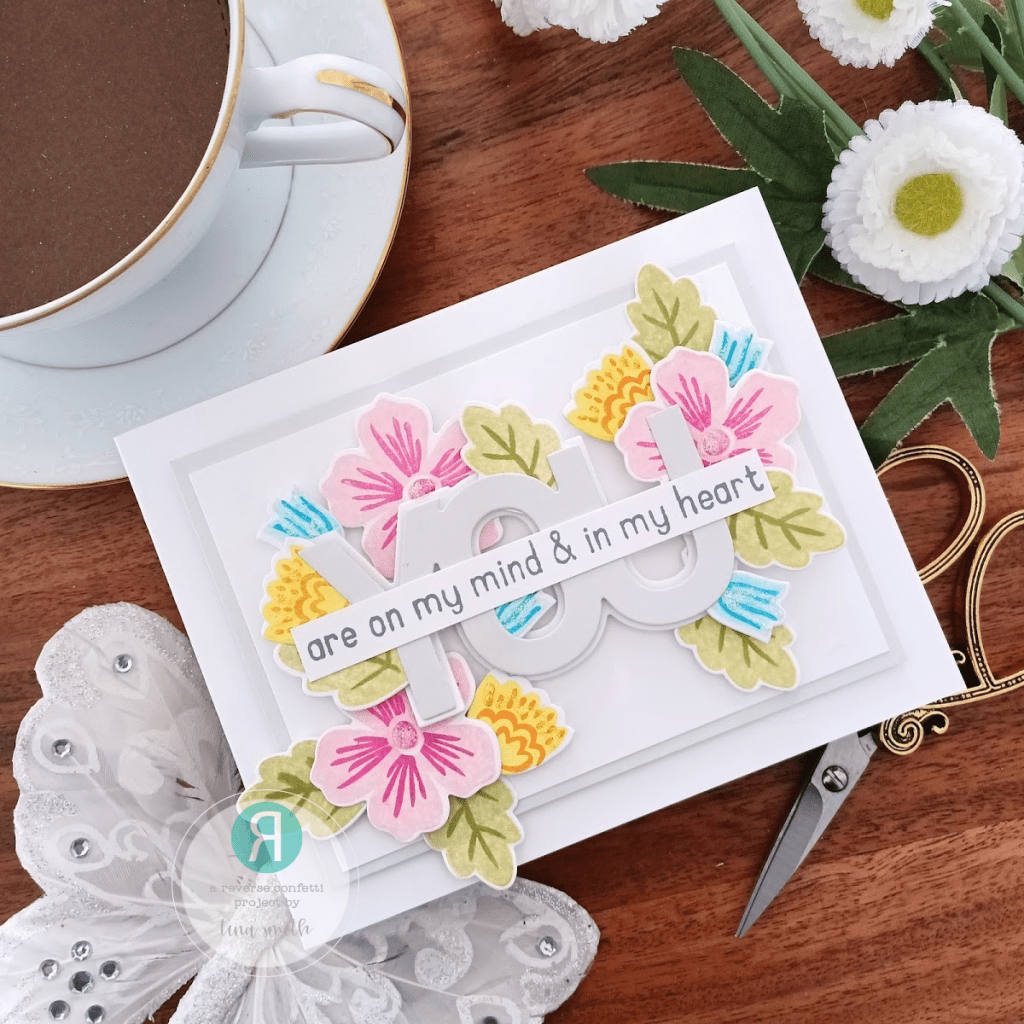 Hi there crafty friends! Today I am sharing a Spring card for Reverse Confetti. Spring is in the air and I fell in love with the Bold Blooms Stamp set! I went ahead and picked up the Coordinating Bold Blooms Confetti Cuts too:) For my sentiment I die cut the New You Confetti Cuts Die and stamped the sentiment with the You Coordinates Stamp set. I stamped the florals with my oxide inks, I just love the bright colors and created lots of layers with everything! I love how it turned out and hope you do too!