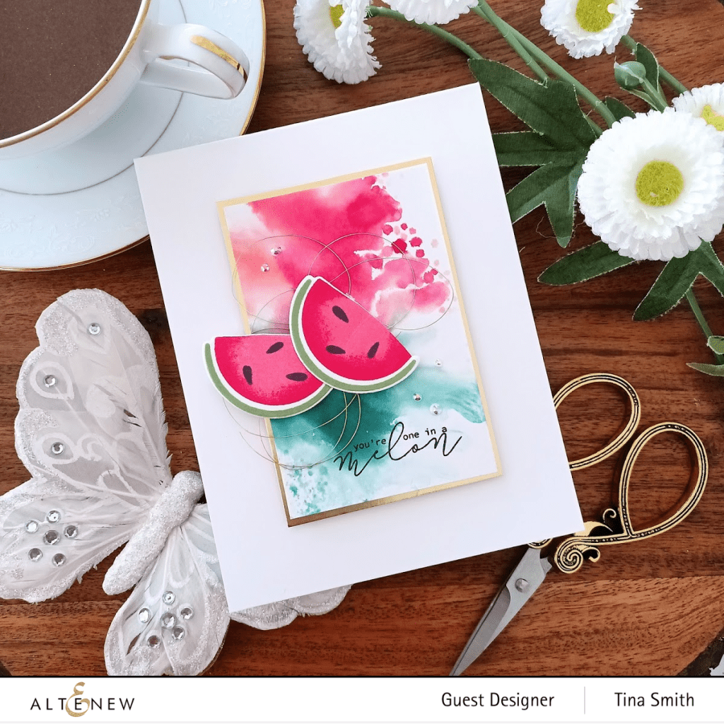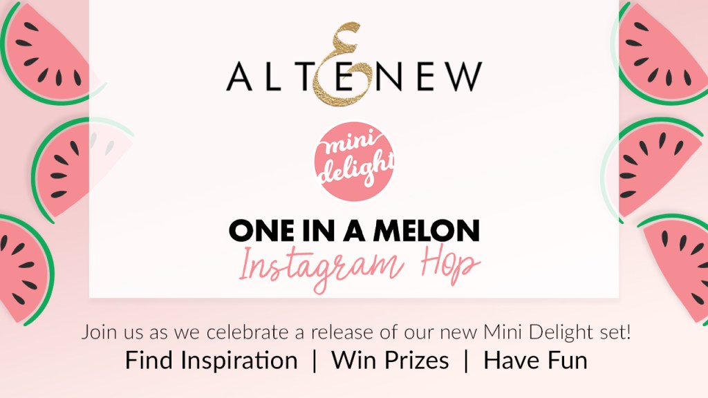 Hello Crafty Friends! I am super excited to be part of the Altenew Mini Delight: One in a Melon Stamp & Die Set Instagram Hop. Altenew is celebrating the New Release of the Mini Delight: One In A Melon Stamp & Die Set with an Instagram Hop:) Yay! I hope you can head on over to Instagram and join in the fun, the Altenewllc IG Page is a great place to start and gives all the details!! There are lots of inspirational projects using this small but mighty stamp & die set and a Giveaway for a chance to win some crafty goodness:) Have Fun!!