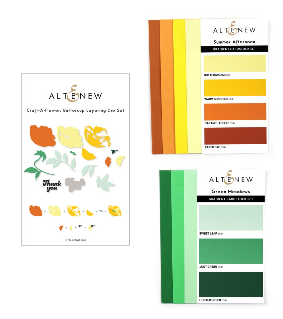 The Craft-A-Flower: Buttercup Layering Die Set & Gradient Cardstock Bundle saves you time, money at a (5% discount)! This amazing bundle takes the guess work out of picking colors of cardstock for your Craft-A-Flower, the bundle has a lovely bouquet of colors, perfectly picked out for you! Making it easy to die cut and create a beautiful card right away! Stop by the Altenew Shop for more details!