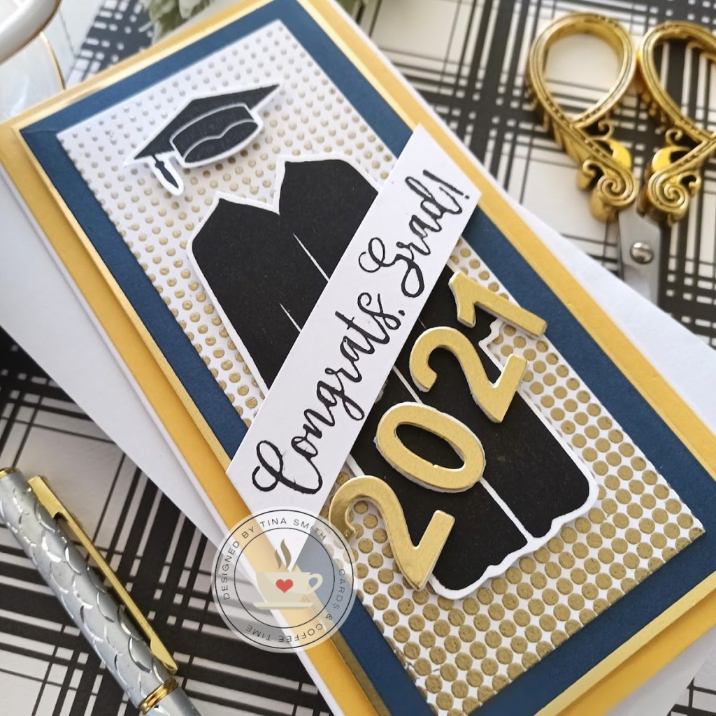 Hello and Happy Friday Crafty Friends! This month the Simon Says Stamp Shop is celebrating and introducing a New Release called “Born to Sparkle“, the project I made today is using one of the items in this amazing release. I used the perfect Class Act 4×6 Stamp Set to create a Mini Slimline – Money Holder – Graduation Card. Since this is the Born to Sparkle Release I had to add some sparkle by heat embossing with gold embossing powder, the Halftone Square Background Stamp. Keeping this card clean & classic! I hope you like it and get a chance to check out the New release over at the Simon Shop!