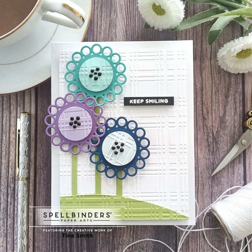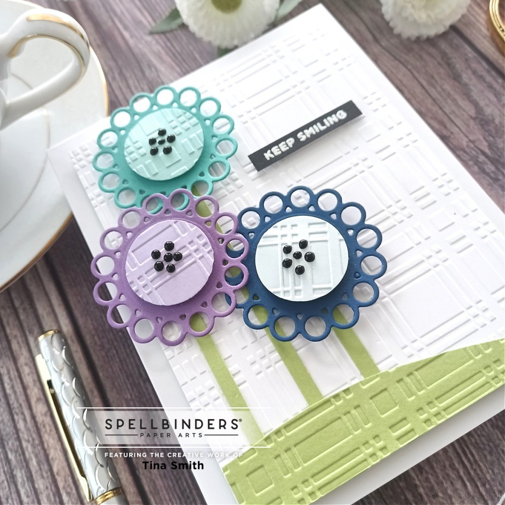 Hello Crafty Friends! Today I am sharing a simple flower card using a a die and stamp set that are part of a Brand New Collection over at the Spellbinders Shop. It is called the Truly Yours Collection. Perfect base dies for all your cards or for creating customized circles too:) I am using the oh so pretty Ring Around the Circles Die set and to create my embossed flowers. I am also using the lovely I’m Here for You Sentiments Stamp & Die Set to the sentiment on my project today. I love how this turned out and hope you do too:)