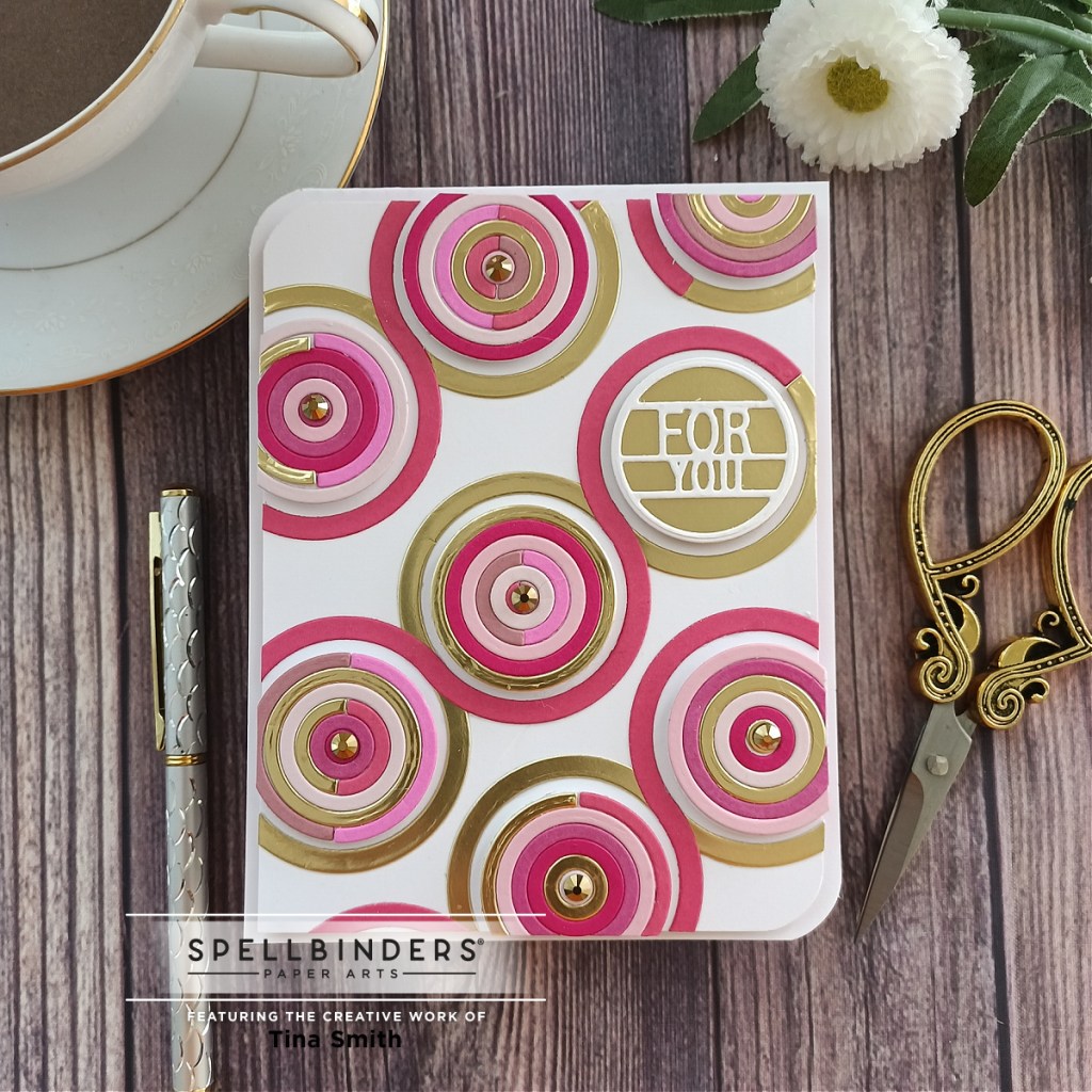 Hello Crafty Friends, I hope you are having a fabulous and crafty day! Today I am sharing a For You circle filled card with the Spellbinders Large Die of the Month Club Kit for JUNE 2021. This month there are 10 cutting dies included in the Colorblock Circles & Stripes Die set. Break out the colored cardstock and bring on the color filled backgrounds with this month’s die set!! I hope you enjoy my projects!