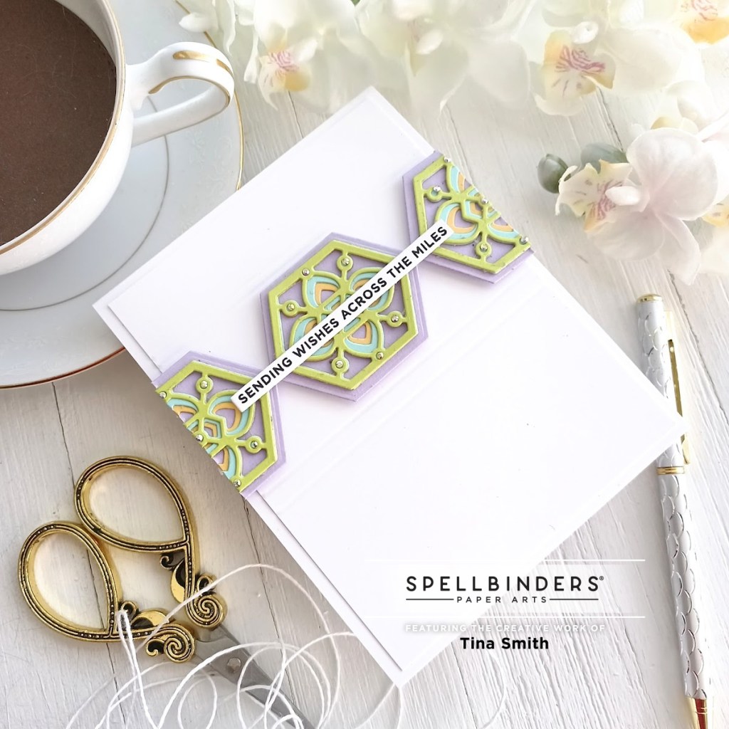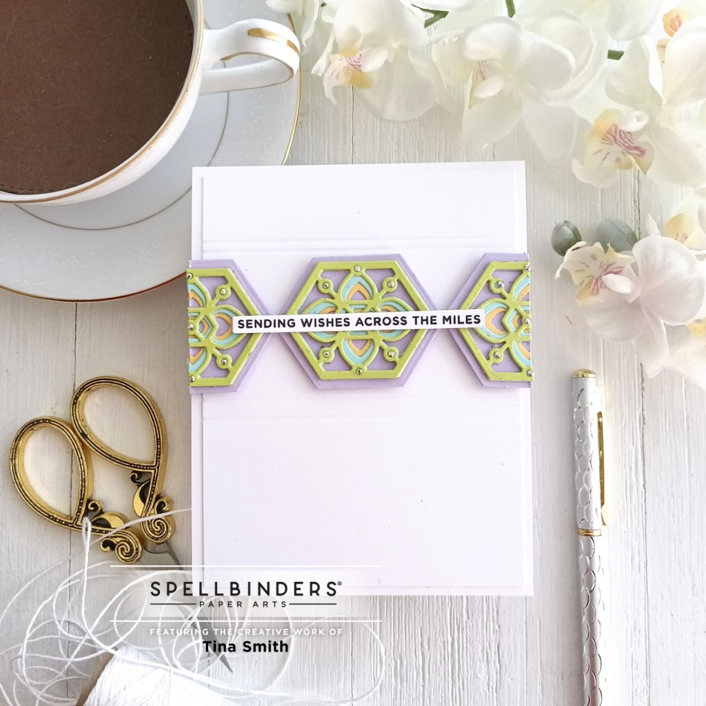 This month the Hex Kaleidoscope Tile Die Set has 6 lovely Cutting Dies. Great for all different size card backgrounds with all the lovely detail the kaleidoscope dies bring. My card is a clean and simple card today but I love the outcome! . Sharing with you how versatile this set is! I hope you enjoy my card project!