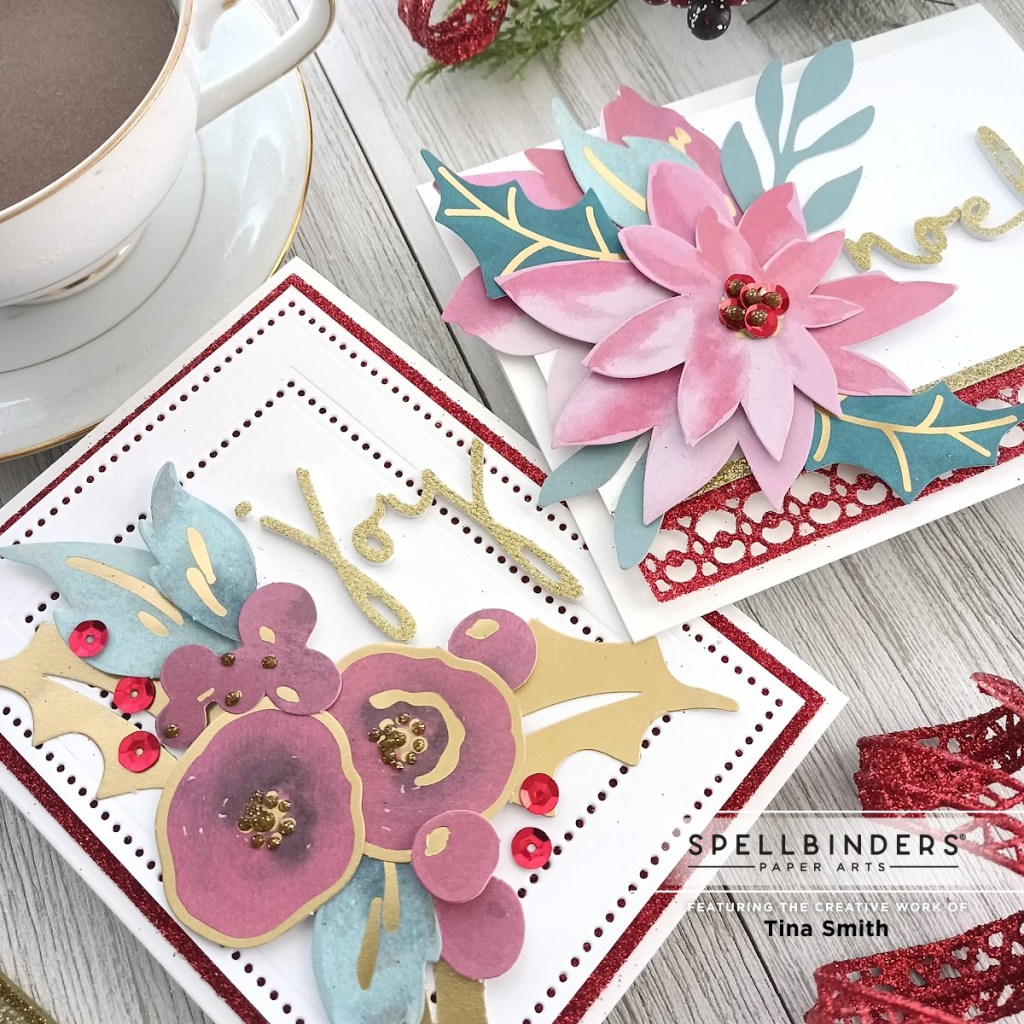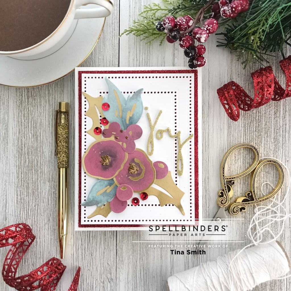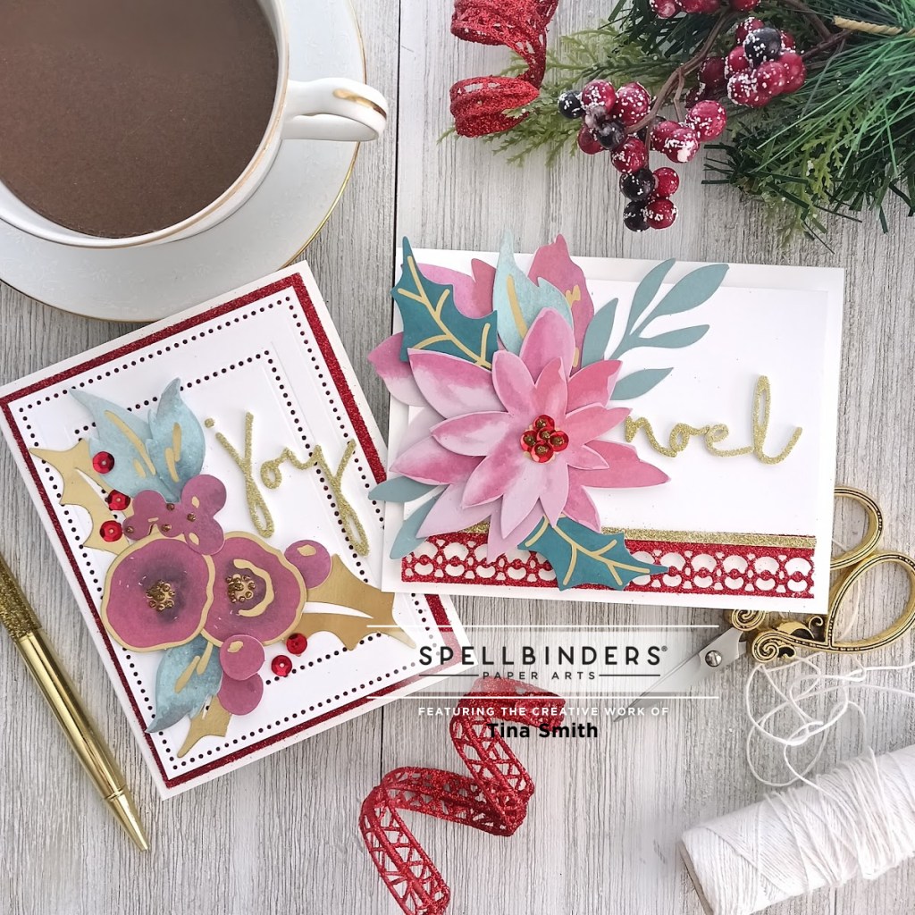 Hello Crafty Friends! Today I am sharing a few projects featuring the 2021 Limited Edition All Aboard Christmas Kit from Spellbinders! This kit is fully loaded!!! It’s Brand New over at the Spellbinders Shop. It is perfect for all your holiday needs when it comes to tags and cards. Today, I get to share with a couple of floral Christmas Cards! Now is always a great time to start creating all our Christmas cards, getting a head start on the season! I love how this turned out and hope you do too:)