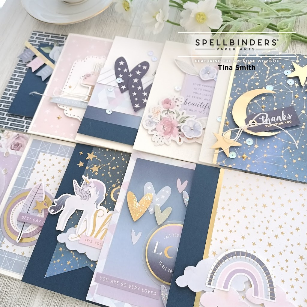 Hello Crafty Friends! Today I am sharing the 10 Cards I made with the Spellbinders “You are Stellar” Card Kit of the Month for OCTOBER 2021. As always the Spellbinders card kit is packed filled with lots of goodies to get creating right away. This month it is all about astrology and the stars!! I love the color combinations and although I am not much into the Astrology scene, there is so much more amazing crafty goodies in this kit, I had no problem creating a wide variety of cards:) I hope you like the cards I made:)