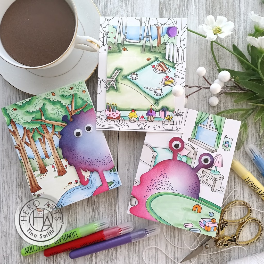 Hello Crafty Friends! Today I want to share with you a few I cards made using the NEW October 20211 and EXCLUSIVE to Joann.com Hero Arts October 2021 Puzzle Monster Card Making Kit!