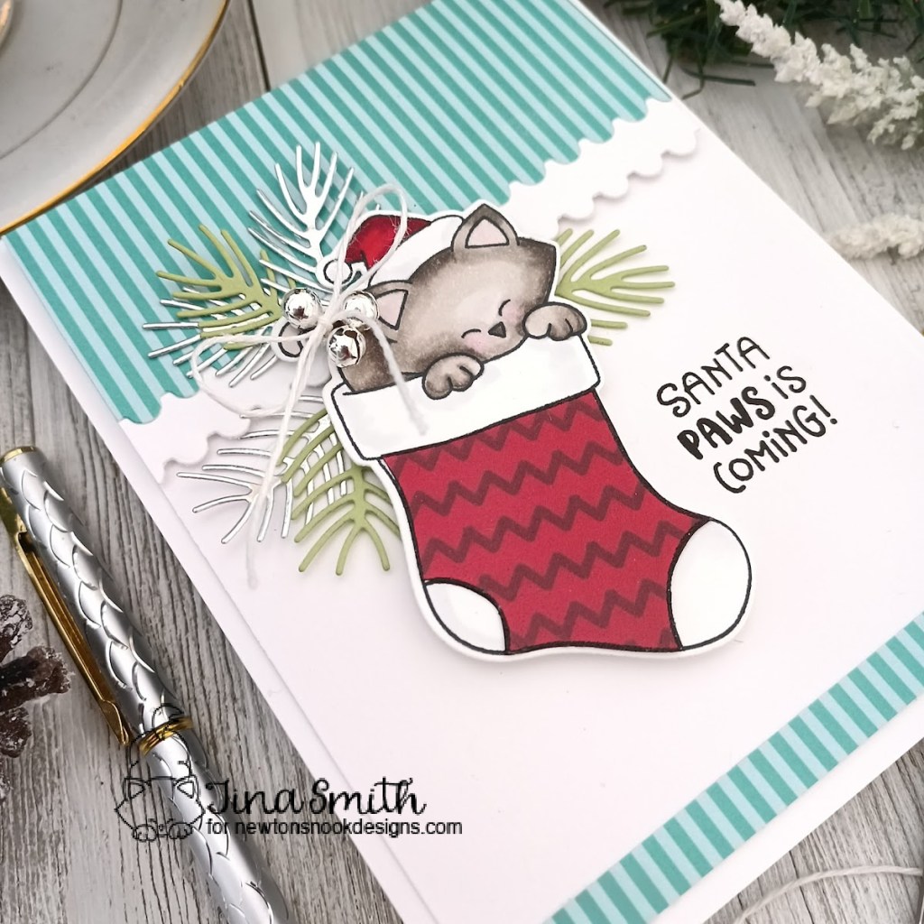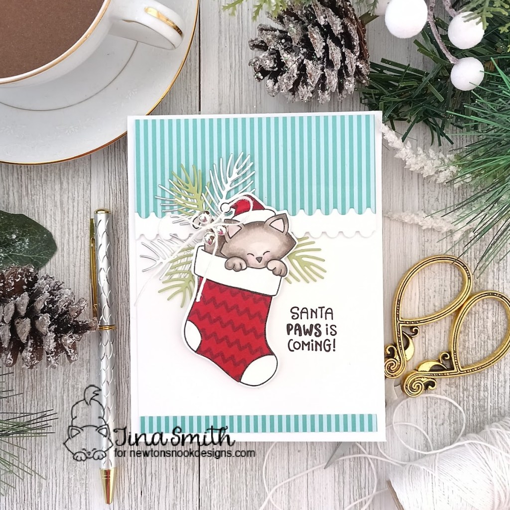 Hello Crafty Friends! I am happy to share a card that features a New stamp set over at Newton’s Nook Designs Shop! Oh how I love this adorable kitty! My project today is using the Newton’s Nook Designs – Newton’s Stocking Stamp set along with the Coordinating Newton’s Stocking Dies. This little guy just makes me smile:) I am also using the New and super fun Meowy Christmas 6×6 Paper Pad the images and patterned papers are perfect for this Holiday Season!! I hope you enjoy my card project!