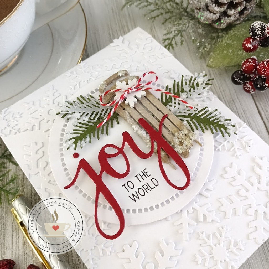 Hello and Happy Tuesday Crafty Friends! Today is Day 22 of my Countdown 2 Christmas Series. I am using a Vintage Sleigh Die set from Memory Box and also one of my favorite sentiment die sets, the Hero Arts Joy Stamp & Cut. I love creating tone on tone backgrounds and using snowflakes seemed the perfect thing to do for this wintery card. I hope you enjoy!