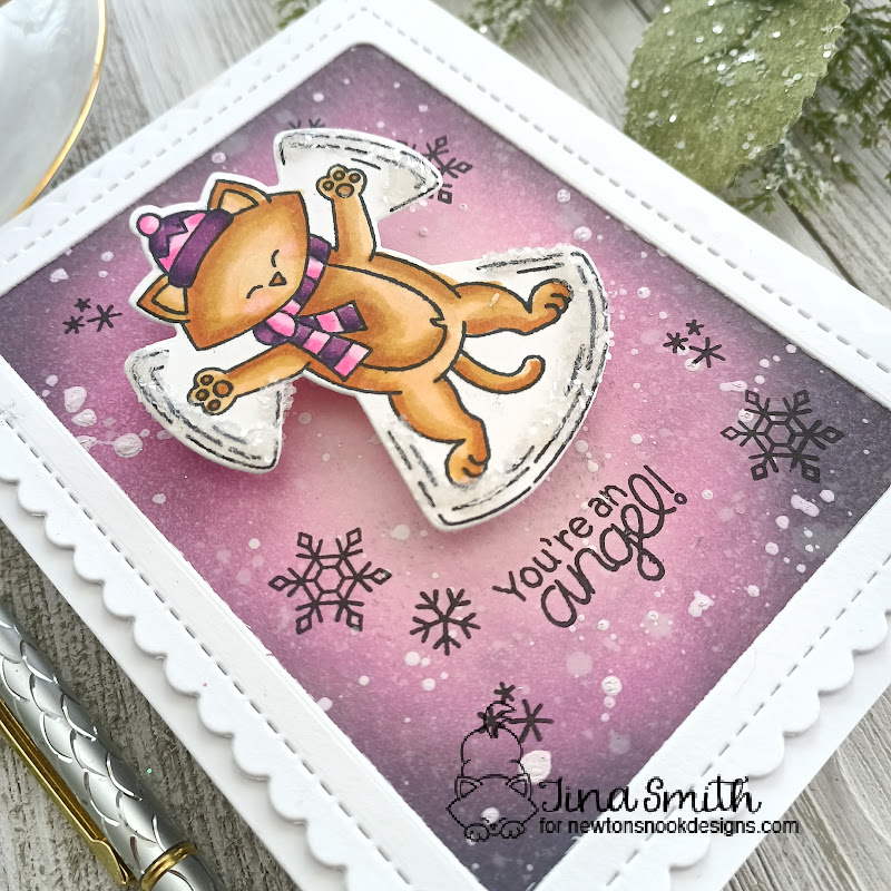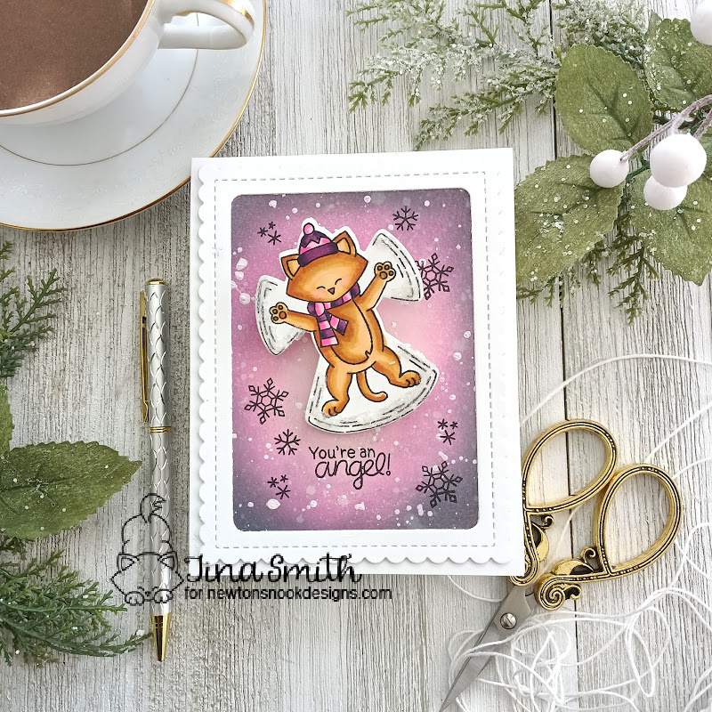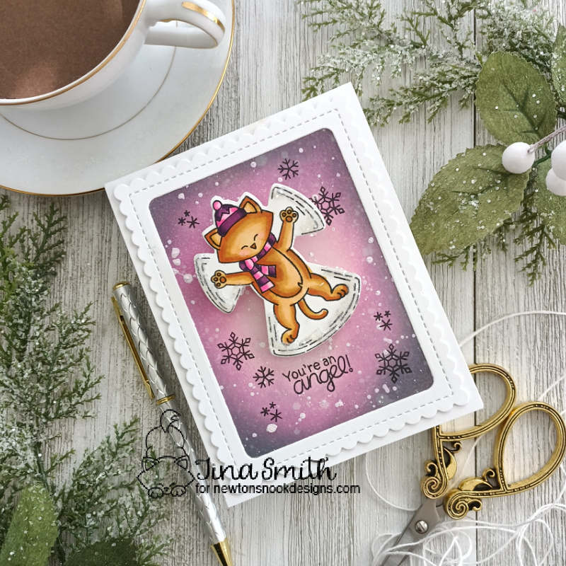 Hello Crafty Friends!  I am happy to share a card that features a New stamp set over at Newton’s Nook Designs Shop! I am not quite ready for the snow season but I do love it and love snow angels even more!! My project today is using the Newton’s Nook Designs – Snow Angel Newton Stamp set along with the Coordinating Snow angel Newton Dies.  This little guy just makes me smile:) Winter scenes are fun and to make it a bit more fun I had to add an action wobble behind Newton, it made perfect sense to me:) I hope you enjoy my card project!