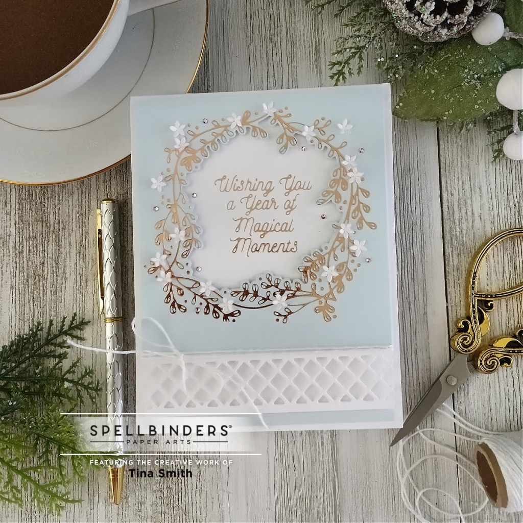 Hello Crafty Friends! Today I am sharing a project with the Spellbinders Glimmer Hot Foil Kit of the Month Club. If you love the Glimmer Hot Foil System this club kit subscription is perfect!! The DECEMBER 2021 kit is called Botanical Crest Glimmer Plate Set ! It has 3 Glimmer plates and 4 Cutting Dies to cut out your glimmer plates and sentiments. This month the foil roll is the lovely Blush Foil. I love the way it turned out and hope you do to:)