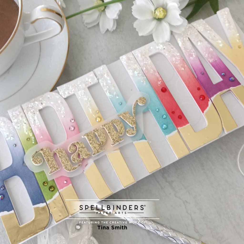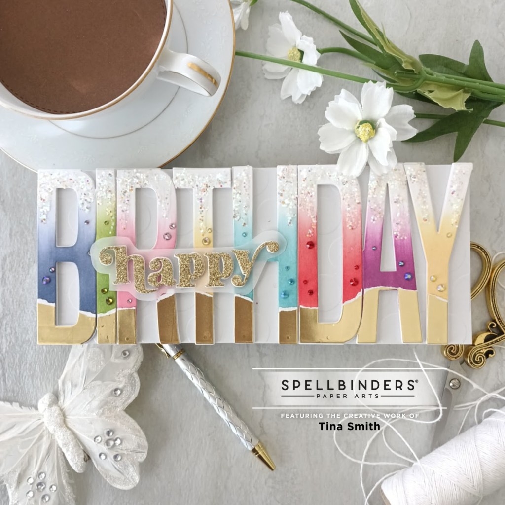 Hello Crafty Friends! Today I am sharing a fun Happy Birthday card using Spellbinders Be Bold Color Block Happy Birthday Etched Dies from the Be Bold Collection over at the Spellbinders Shop. It creates a super XL card front sized happy birthday that can is sure to make the recipient smile!! I created a Sparkle filled Happy Birthday card with Sparkle Cuts, Color Essential Gems and Gold Mirror cardstock!! I love how this turned out and hope you do too:)
