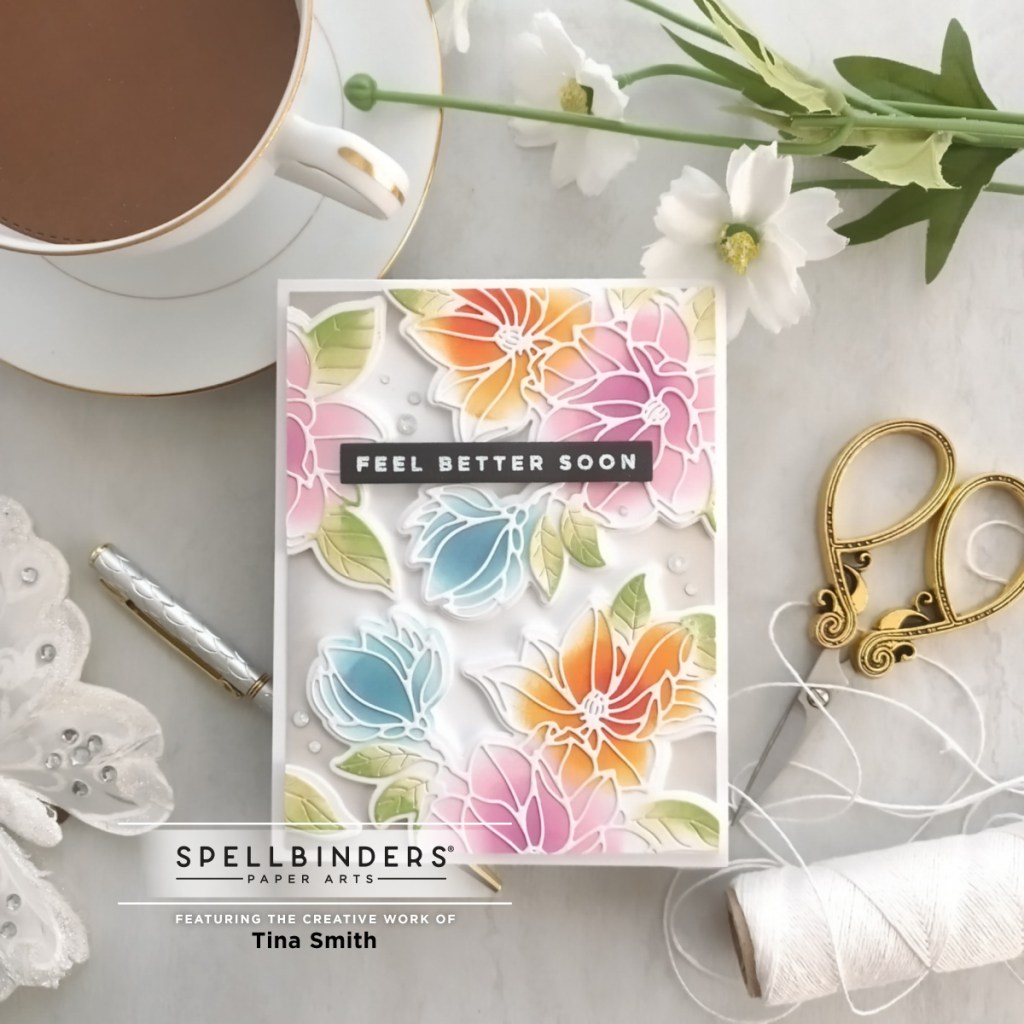 Hello and Happy Tuesday Crafty Friends! Today I am sharing a get well card that is filled with beautiful florals and it looks like I spent hours on it:) It was actually quick and easy! I am featuring a die set from Spellbinders. Say hello to the lovely Magnolia Blooms Etched Dies from the Yana’s Blooms Collection. I think this magnolia is stunning and love how fast it was to create this card, this would be a great note card set too:) I I hope you like it!!