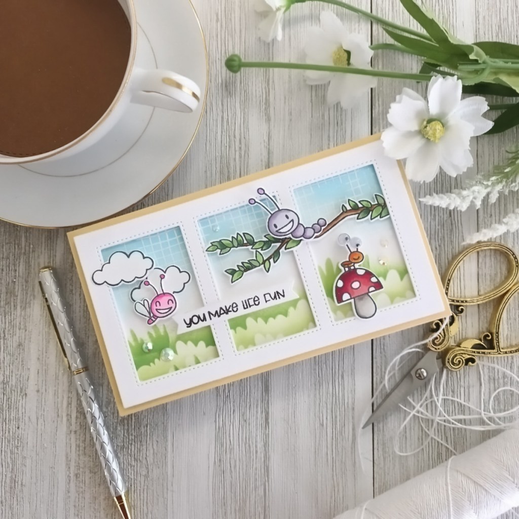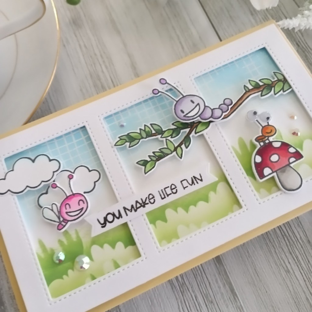 Hello crafty friends! Today’s card features the adorable & Coming Soon – Bugs & Kisses Stamp set along with the Coordinating Dies. I also use the PhotoPlay #6 RECTANGLE WINDOW Die Set for my mini slimline card. This stamp is part of the new Photoplay Release is sure to make some smiles along the way. I look forward to creating and sharing some fun projects with the amazing Photoplay Paper Say It with Stamps Collections.
