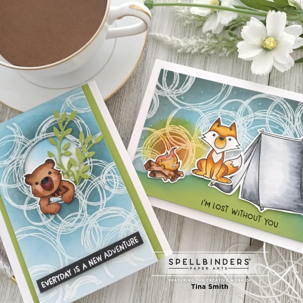 Hello Crafty Friends! Today I am sharing a few cards using some items from the amazing Spellbinders Cardmaker III Collection over at the Spellbinders Shop. I love creating scenes on cards with colorful backgrounds. Today I created 2 cards with the Campfire Critters Stamp set and the Circle Sketch Stamp Set. I think the sentiments in the Campfire set are super cute too. I love how this turned out and hope you do:)