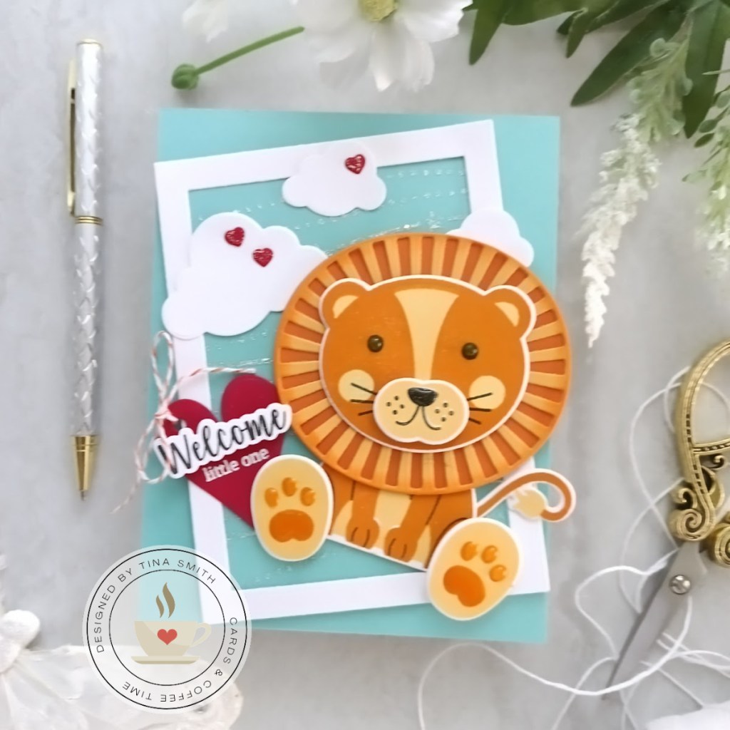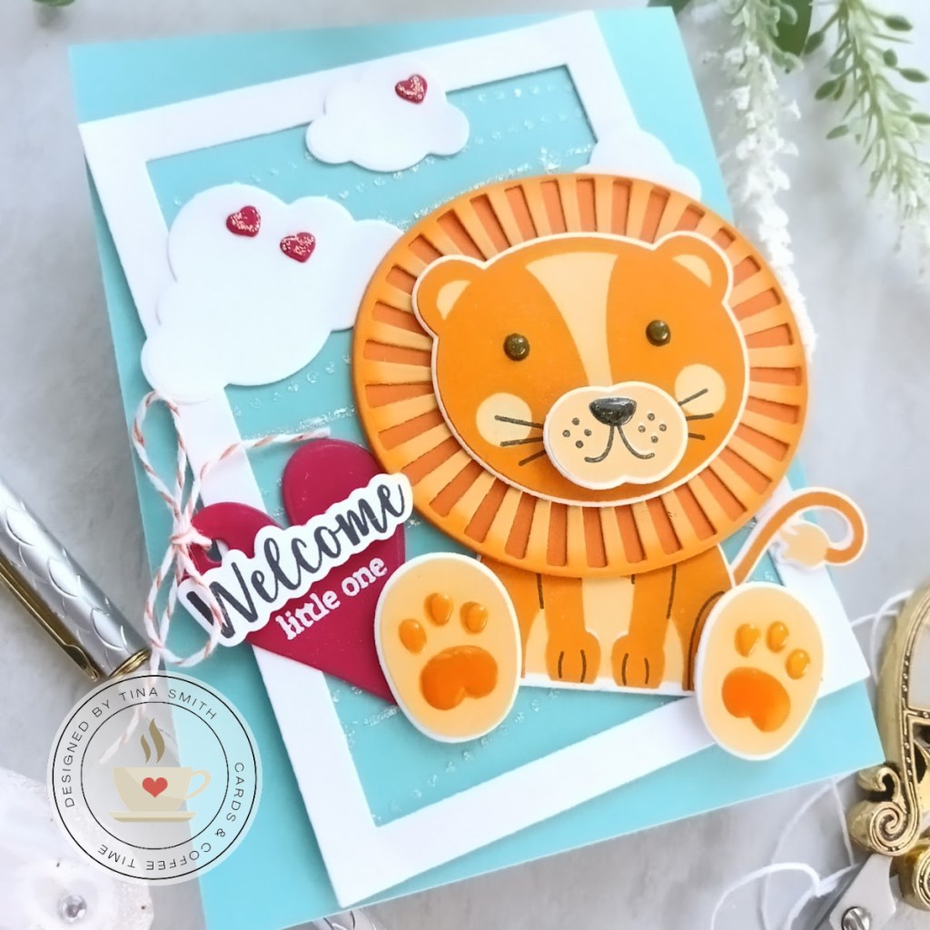 A Welcome Baby card with the Papertrey Ink Build-A-Lion.