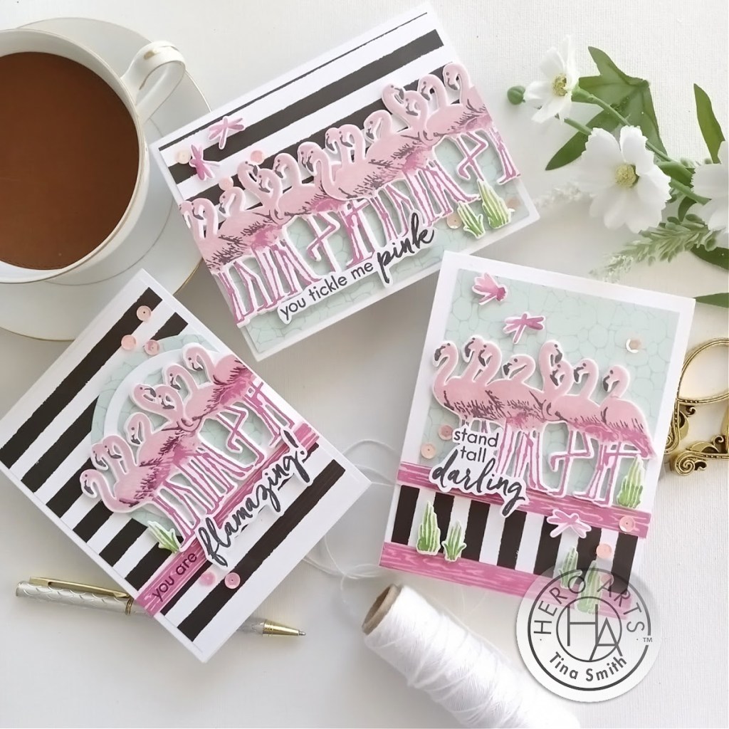 We are thinking pink today! I love it and created 3 cards filled with fabulous flamingos. This month the layering flamingos are amazing and the sentiments that coordinate with them are just too cute. The colors in this month’s kit are bright and colorful too! I love how they all turned out and hope you do too! Links are below for the MMH Kit subscription.