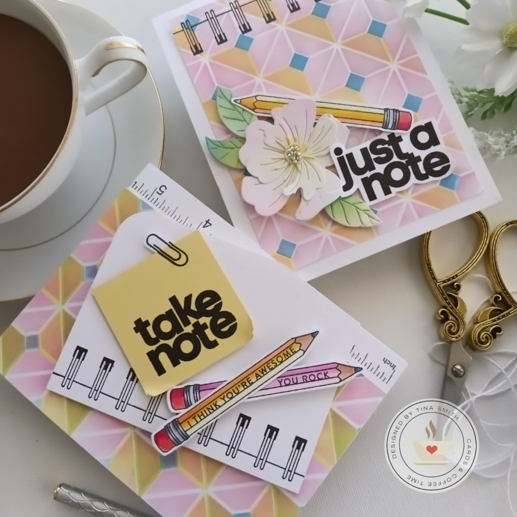 Great cards…love the cube stencils and fun pencil stamps.