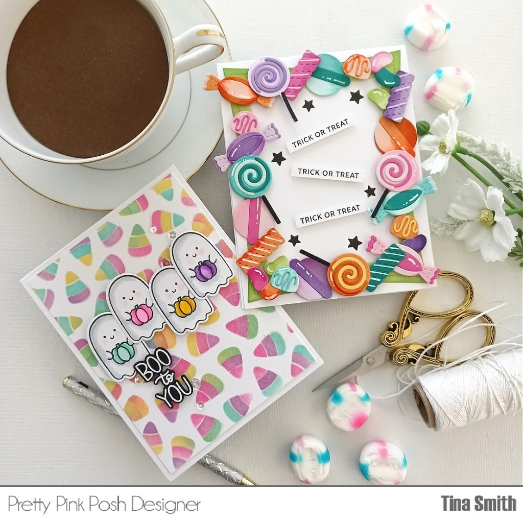 My projects features the Candy Treats Die Set, the Layered Candy Corn Stencil Set (3 Piece) & the Ghost Friends Stamp Set both are part of the new release.