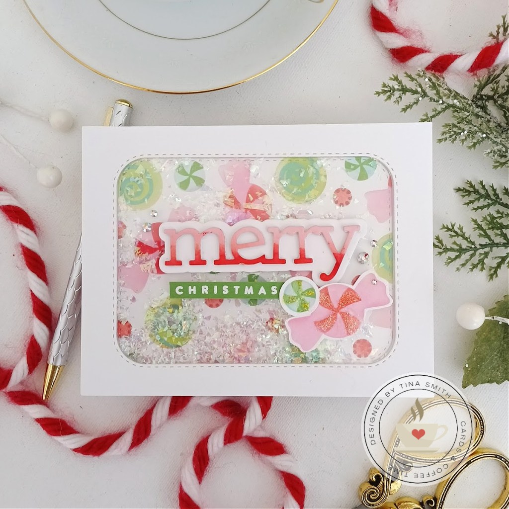 Hello and Happy Tuesday Crafty Friends! Today I am sharing a sweet Christmas card! I am featuring a few new items from Simon Says Stamp , the Simon Says Stamp Stencils LAYERING PEPPERMINTS, the Simon Says Clear Stamps SIMPLE HOLIDAY GREETINGS and the CZ Design Wafer Dies MERRY WORD. They are part of the October 2022 Cozy Hugs Release🙂 I created a icy shaker that doesn’t shake, it reminds me of clear candy wrappers. I love sweet themes for Christmas cards and I hope you like it!!
