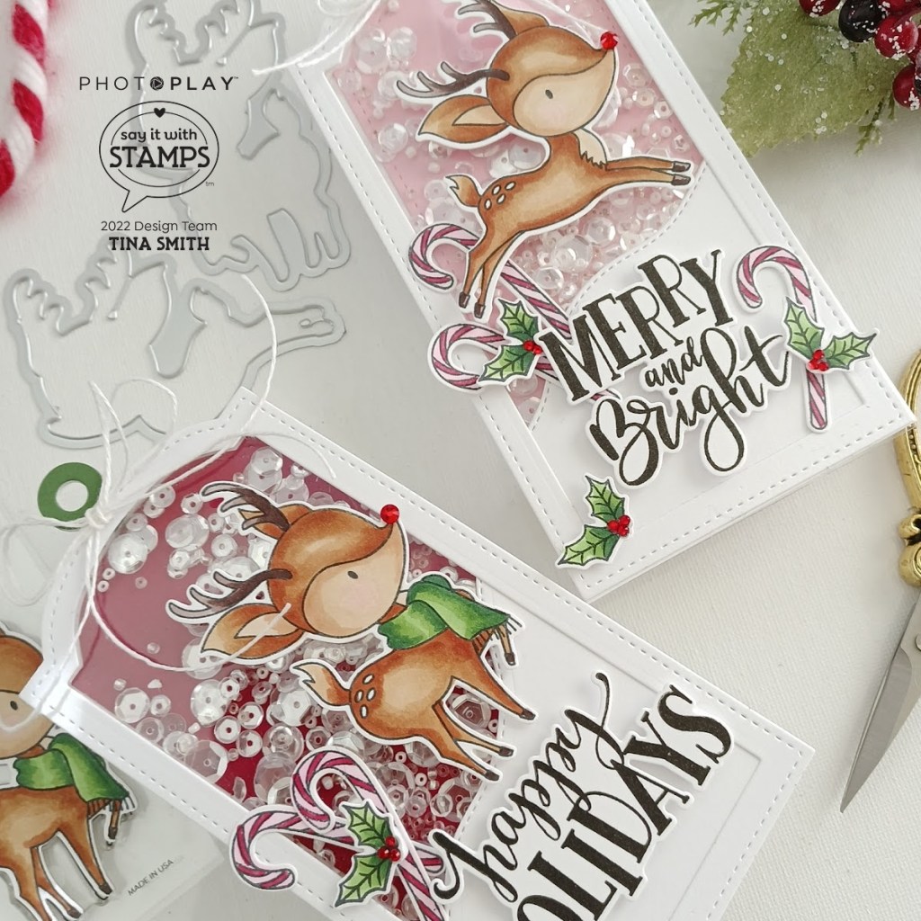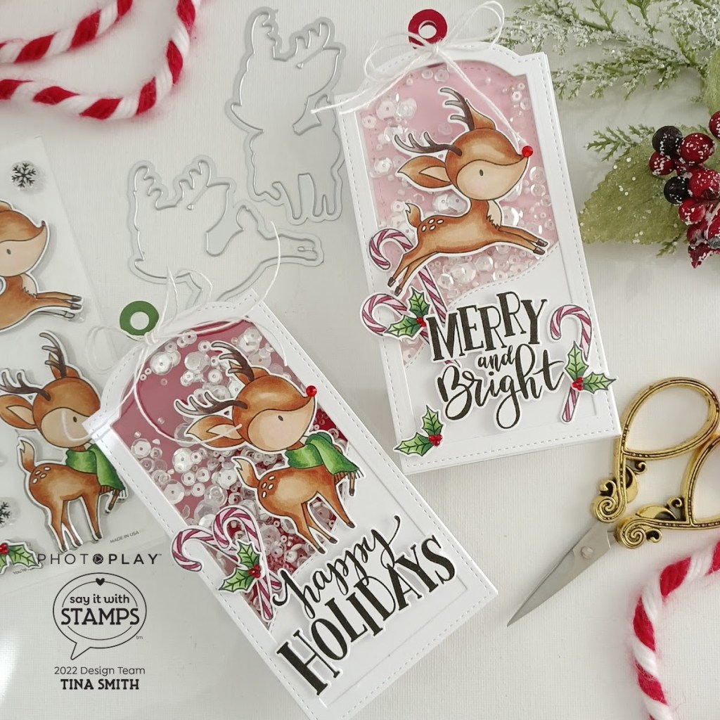 Hello crafty friends! I hope you are having an awesome day! Today we are creating extra special and XL shaker tags that are easy and perfect for Holiday gift giving. To create my tags I am using the PhotoPlay NUMBER 6 NESTED BOOKPLATE Die Set. For my focal point I am adding images from 2 stamp sets to my tags with the PhotoPlay YOU’RE A DEER Clear Stamps, the Coordinating Dies, the Photoplay HOLIDAY SENTIMENTS Clear Stamps and the Coordinating Dies to go with it. I love how easy it is to create shaker tags and I love that they are XL for scenes:) See you next week for some more fun projects with the amazing Photoplay Paper Say It with Stamps Collections.