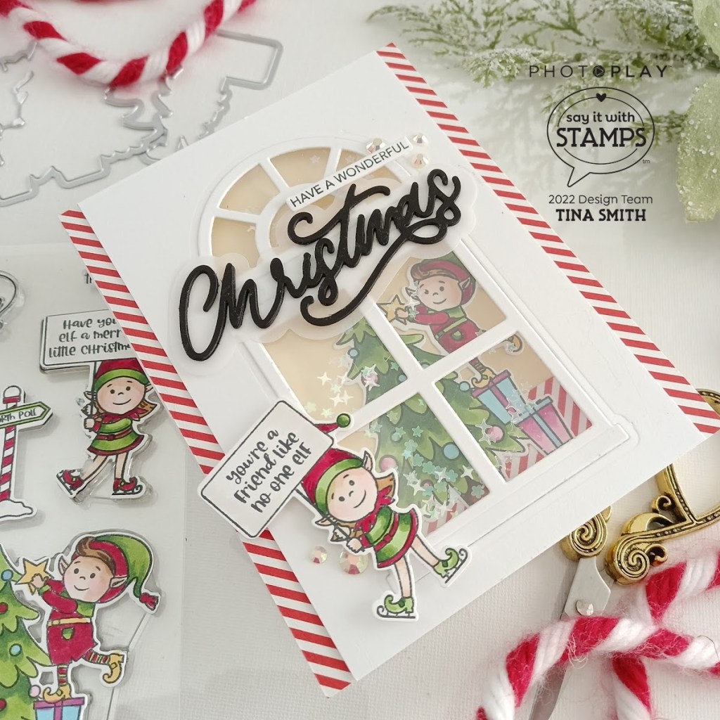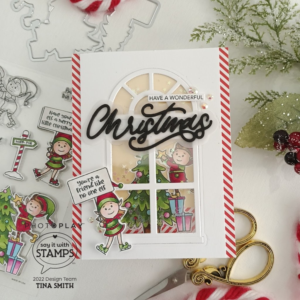 Hello crafty friends! I hope you are having an awesome day! Today we are creating a fun Double Scene tri-fold Christmas card with plenty of room for a gift card or an extra long message. To create my card I created a window with the Photoplay Say it with Stamps Windows Die set. I placed images from the PhotoPlay SANTA’S HELPERS Clear Stamps and placed them on the inside and outside of the tri-fold card. I added patterned paper from Brights 6×6 Paper Pad too. I used the PhotoPlay CHRISTMAS WORD Die Set and the PhotoPlay CHRISTMAS WORD Clear Stamps above my window for the sentiment and love how this turned out. See you next week for some more fun projects with the amazing Photoplay Paper Say It with Stamps Collections.