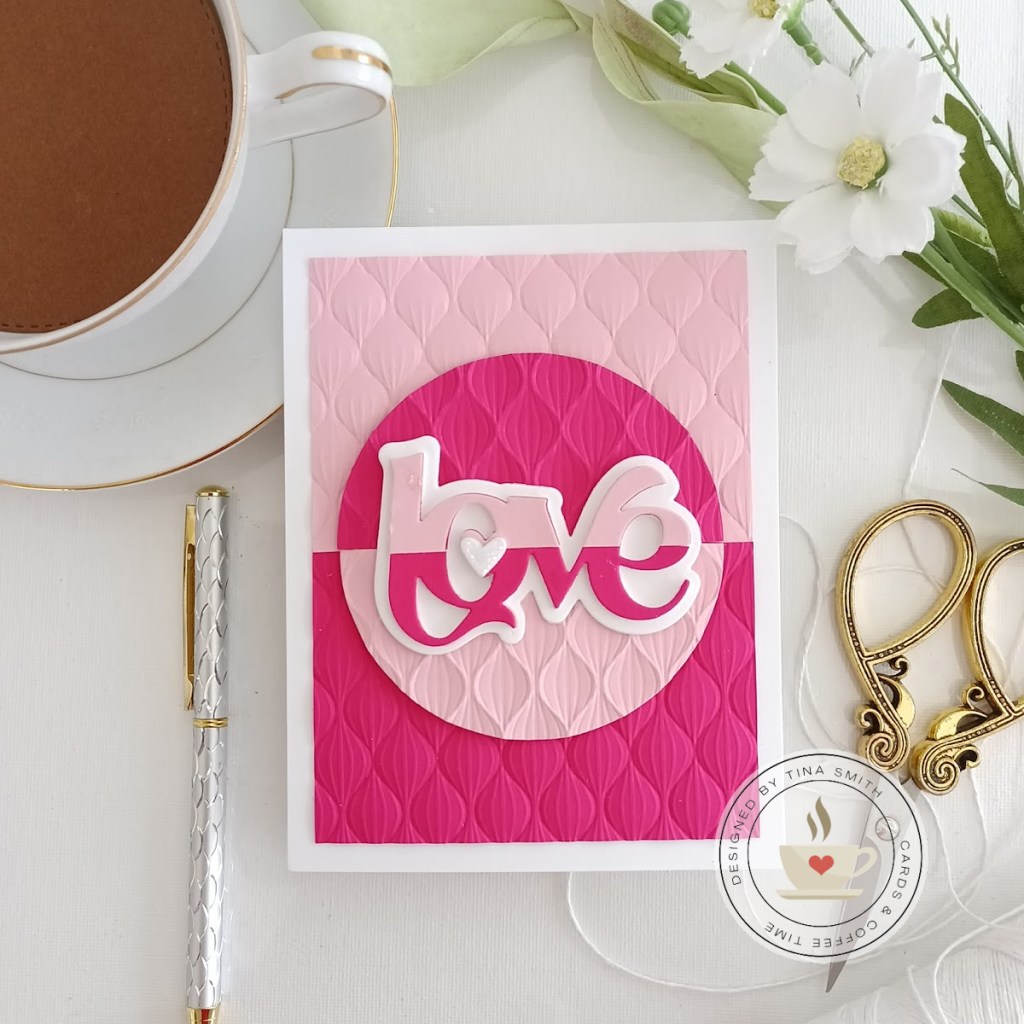 Hello Crafty Friends! I hope your having a great Friday day! I am sharing a project with the Simon Says Stamp FANCY LOVE Wafer Dies and the Simon Says Stamp Embossing Folder SPUN GLASS, it’s new part of the Simon Says Stamp HUGS Release. I created three 50/50 Valentine cards that are super easy to create doubles of. The super pretty fancy Love die and embossing folder did all the work for me, just a bit of die cutting and trimming. easy peasy lemon squeezy! I love the texture and how fast it was to create them. I hope you like my projects!