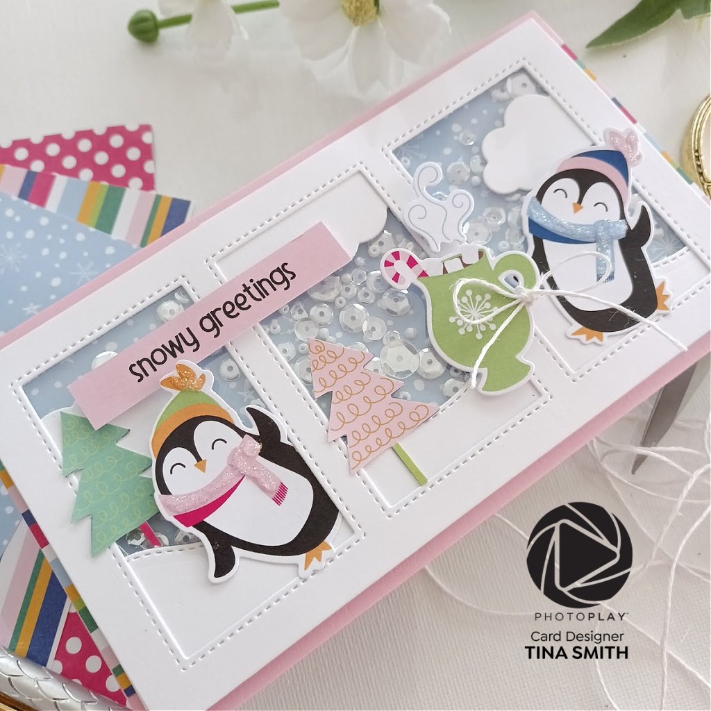 A Mini Slimline Shaker Card with the Photoplay 12×12 Snow Day Collection!
