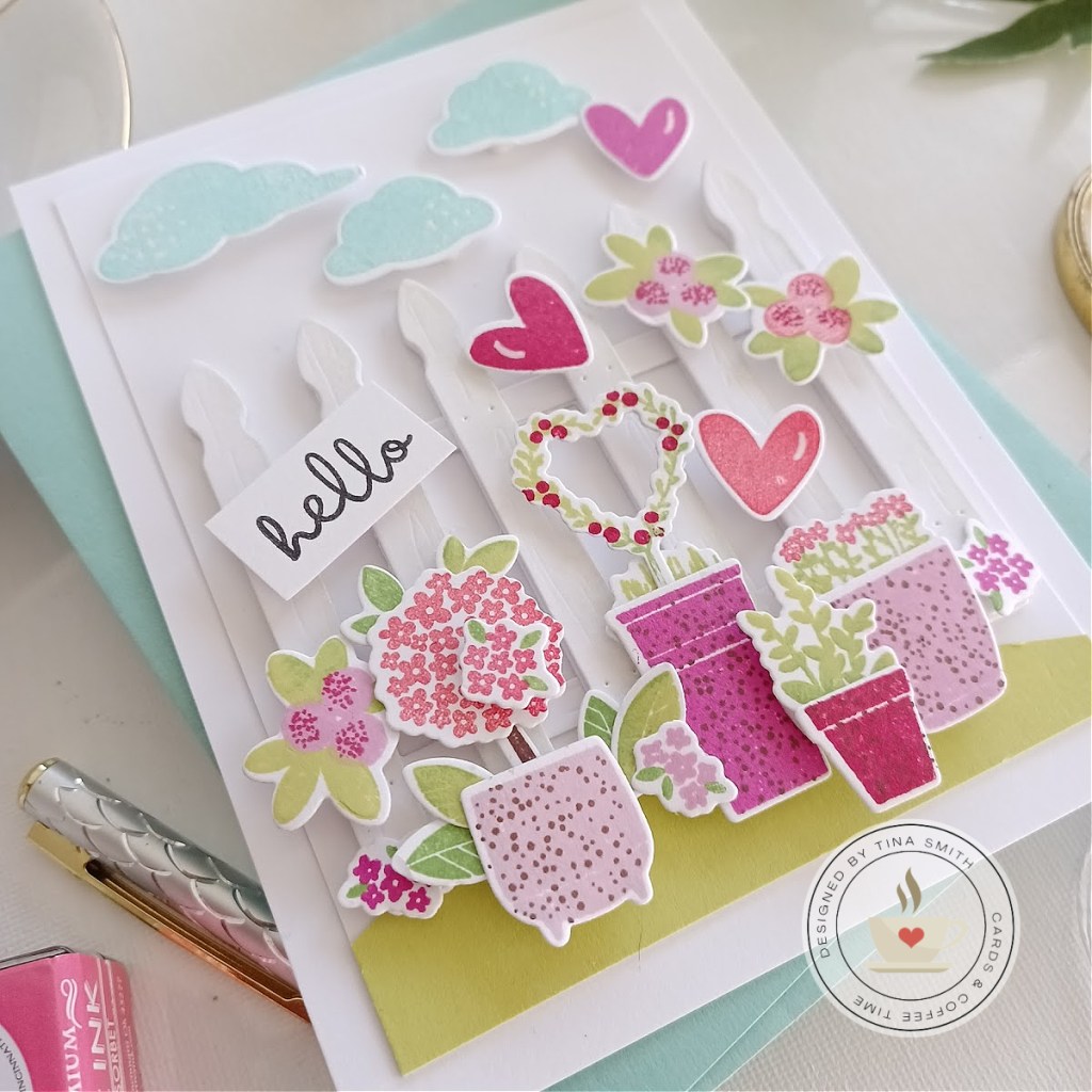 Tina, I absolutely adore your card design! The fence makes an awesome backdrop to the potted plants!