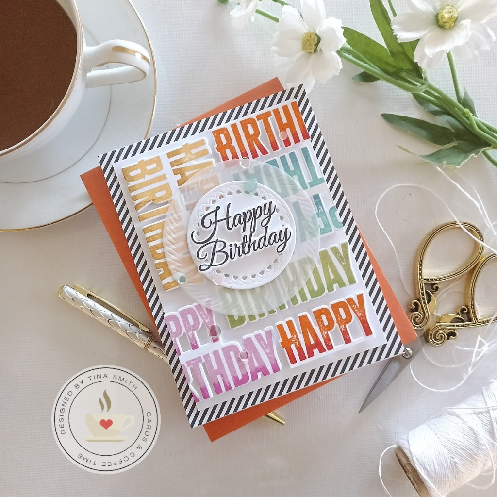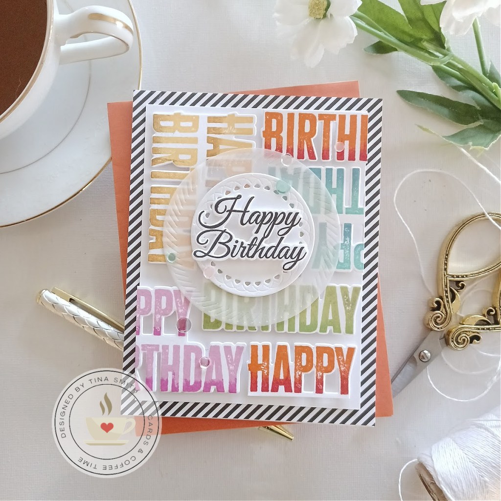 Hello crafty friends! Tina here, with a fun & easy birthday card. For my project I used the Birthday Your Way Stamp Set and the Coordinating Birthday Your Way Die set. Both are from the Papertrey Ink Shop’s January 2023 Release! I created a panel filled with different colors of Happy Birthday sentiments each with a color gradient, popping each of them up with foam adhesive. I stamped and die cut a scripty happy birthday and layered it on a set of circles using the Love to Layer Scalloped Circles Die set. Check out the Papertrey Ink Shop and the latest Release Here!