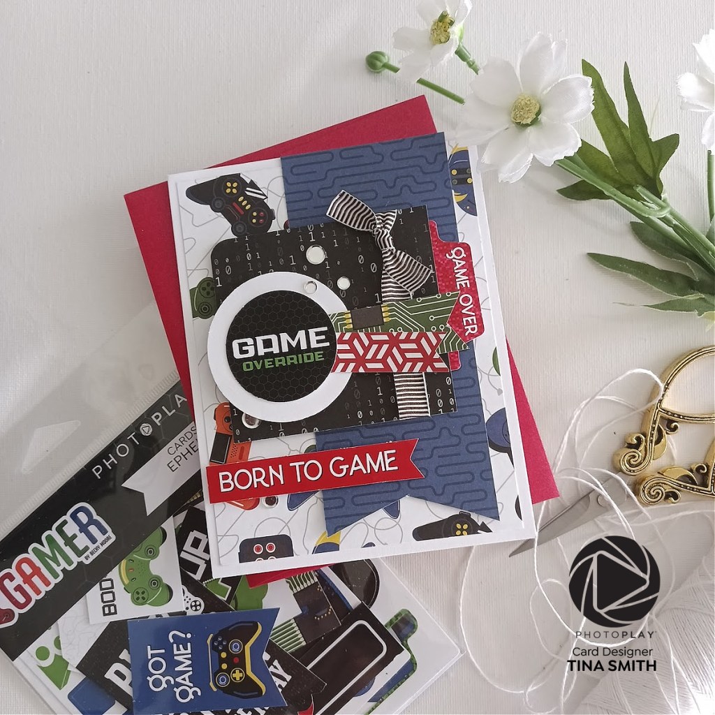 Hello crafty friends! I hope you are having a fantastic day! Today we are creating a two game cards that are perfect for kids, teens and adults who like there video games. To create my tunnel cards it was super easy with the PhotoPlay GAMER Cardstock Ephemera. I used the die cuts and patterned paper from the PhotoPlay GAMER 12 x 12 Collection Pack to create easy cards with no stamping or die cutting. I love how they both turned out. See you next week for some more fun projects with the amazing Photoplay Paper Collections.