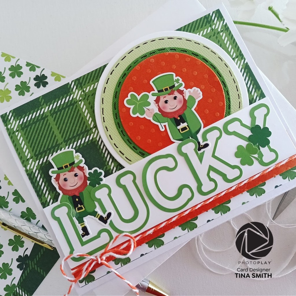 Hello crafty friends! Today’s fun card features the 12×12 Photoplay Paper Pot Of Gold Collection Pack. St. Patrick’s Day is next month and if you have a favorite person who loves to celebrate this collection is just for you! I love playing with patterned paper and Collection Packs, they coordinate papers for you:) I also used the My Colors Pot of Gold Variety Cardstock Pack on my project, all the papers coordinate beautifully and each had it’s own texture or special element that makes it unique to regular cardstock! I hope you like my project!