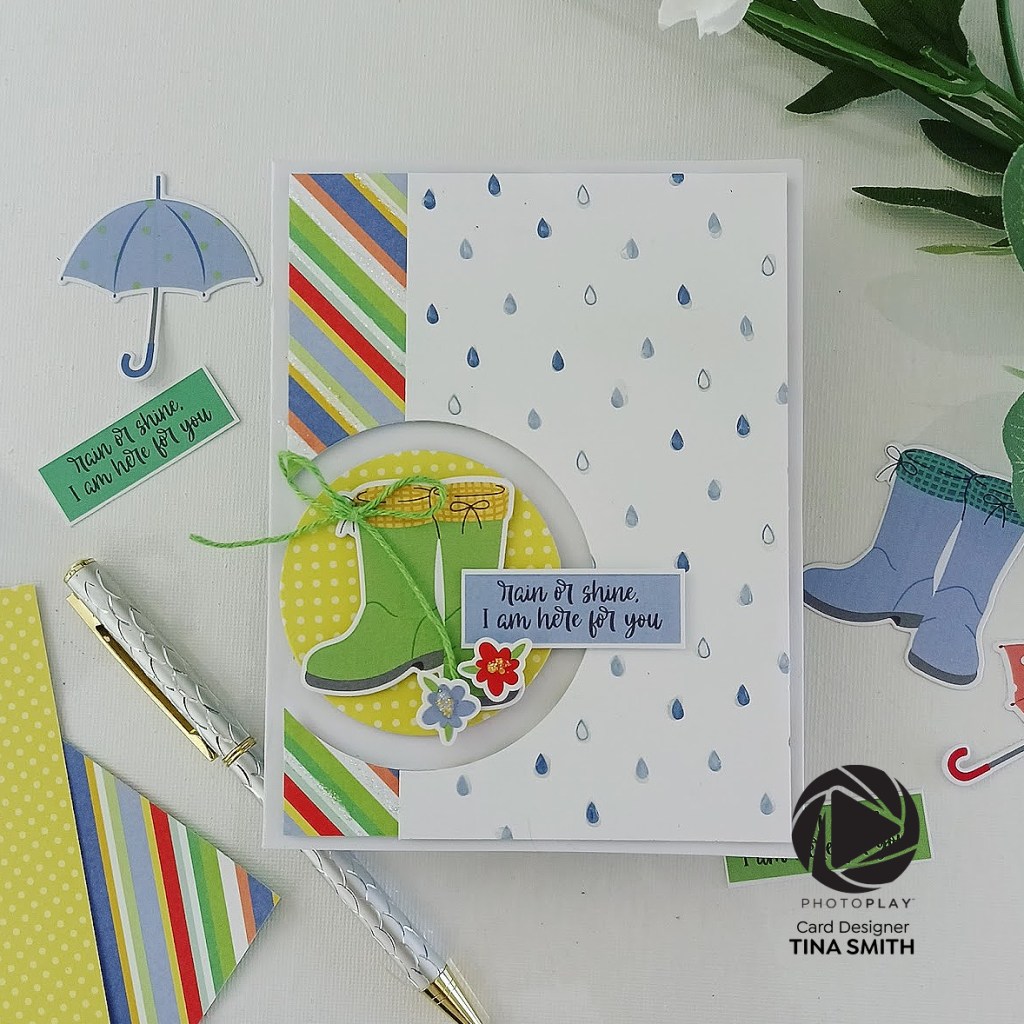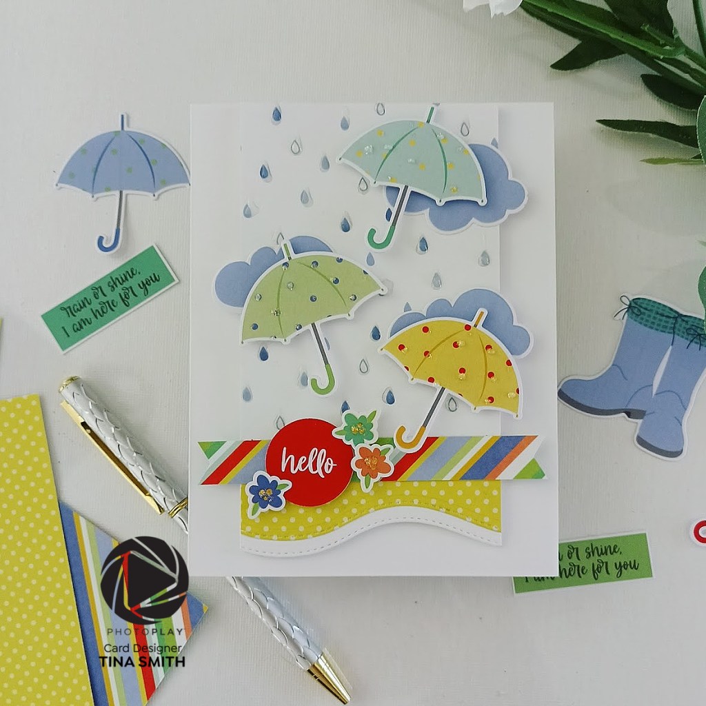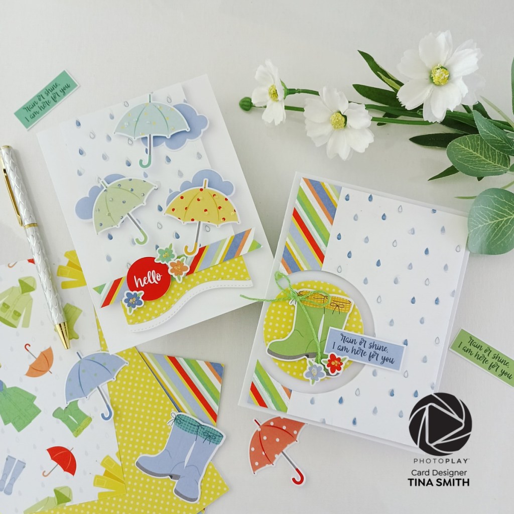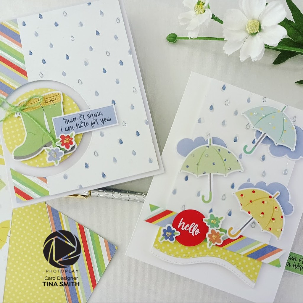 Hello crafty friends! Playing with more patterned paper with the 12×12 Photoplay Showers & Flowers Collection Pack. Send some smiles on rainy days with this collection:) These cards are super quick with the Photoplay Showers & Flowers Dies Paper and the Photoplay Showers & Flowers Coordinating Dies. I added a few flowers from the included sticker sheet too! I hope you like my project!