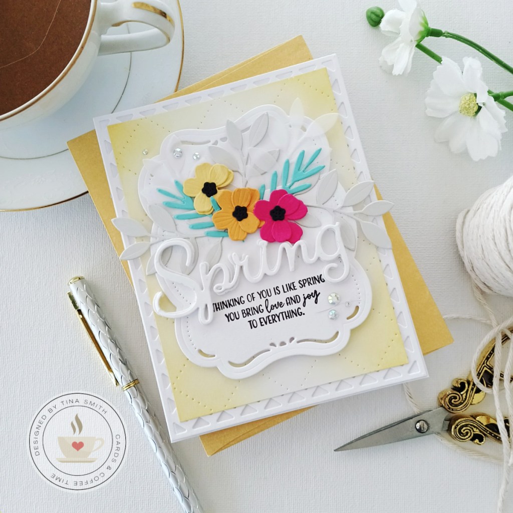 DIES: Into the Blooms: Clover, Psalm Reflections: February, Border Bling: Lattice, Larger than Life: Spring Die, Cover Plate: Quilted Die