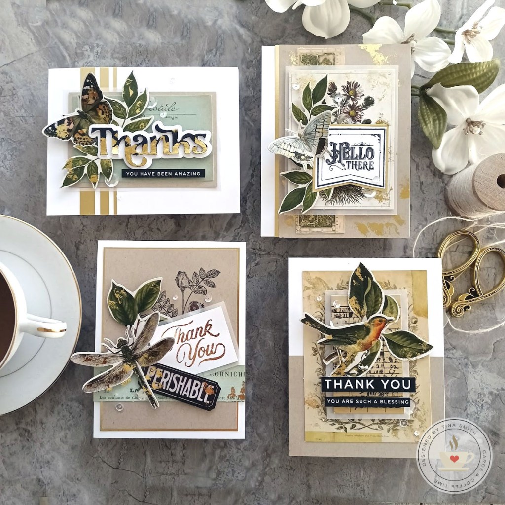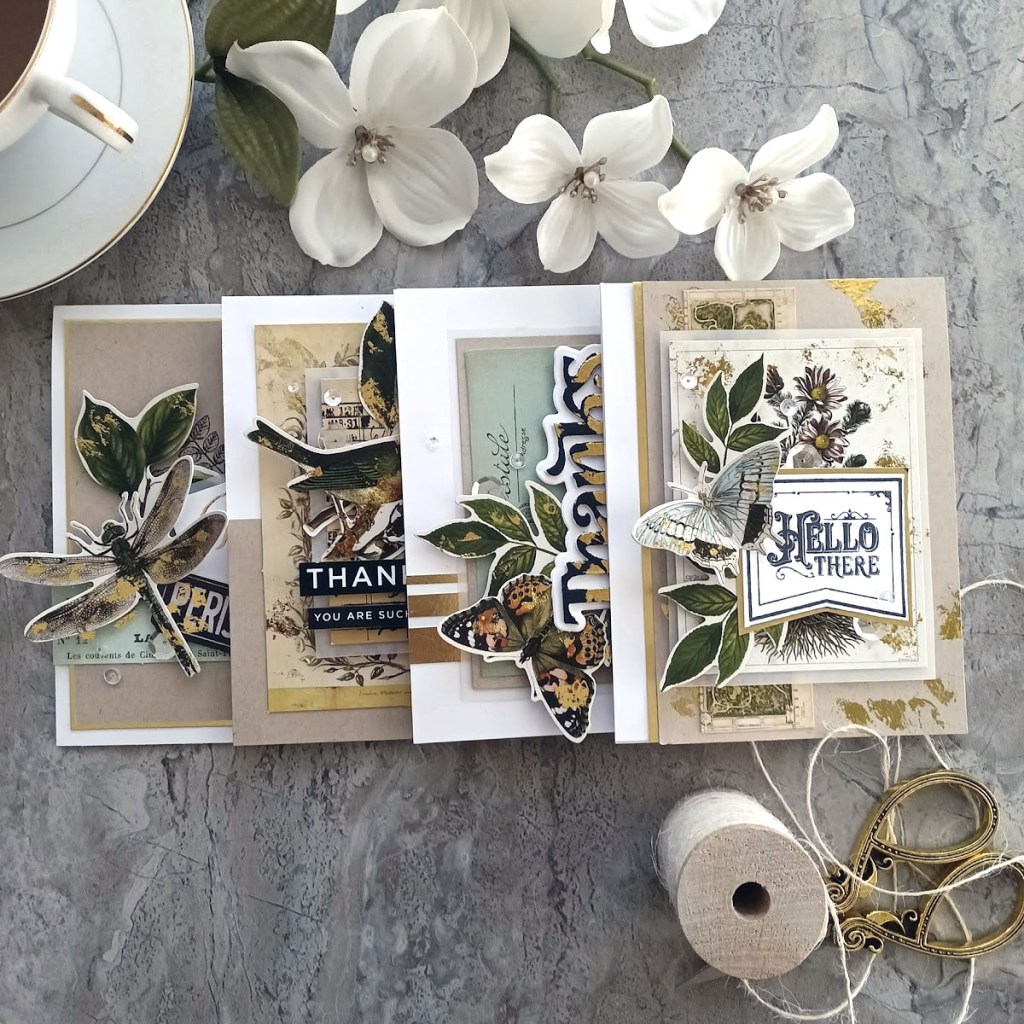 Hello Crafty Friends! I hope your having a great day! The @SimonSaysStamp June 2023 Card kit has arrived & I am sharing 4 Vintage Mix Media style cards using just the Kit. I love the variety of mixed media style elements & I love creating this style of cards, I call collage cards. Today, I spruced it up a bit by distressing the decofoil by using one item we all have in our craft room. Watch the how to video below for more details on how I created all four cards. I hope you like my projects!