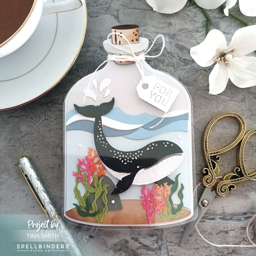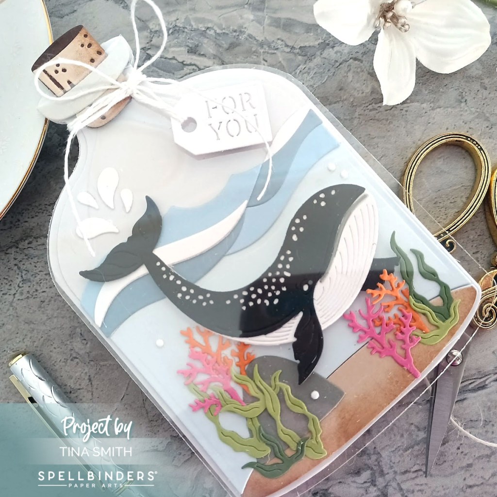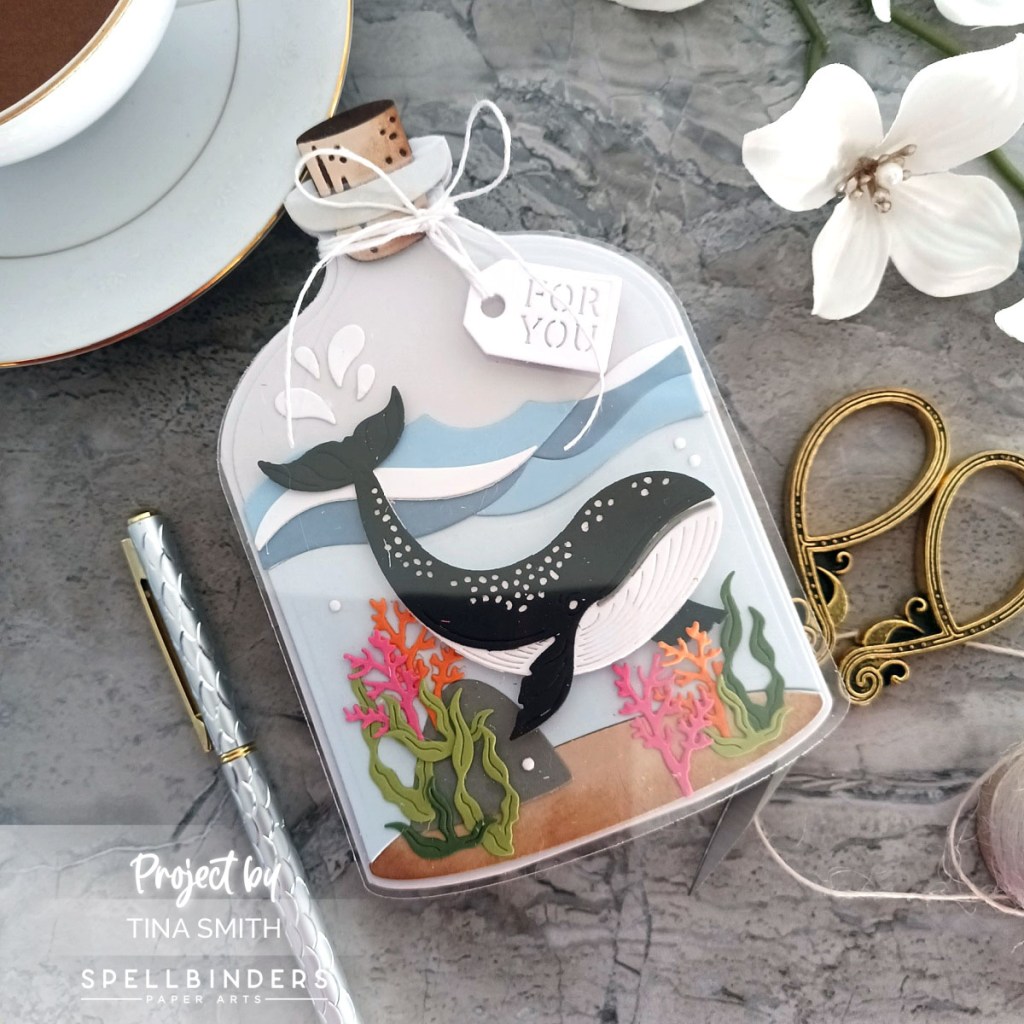 Hello Crafty Friends, I hope you are having a super day! Today I am creating a shaped card with a floating acetate overlay using the Spellbinders Large Die of the Month Club Kit for June 2023. This month there are 20 cutting dies included in the Whale in a Bottle Die Set, the dies this month create a an ocean scene in a bottle with a fantastic whale, ocean foliage and a tag to place your sentiment. Watch the How-To video to see how I created it I hope you enjoy my project!
