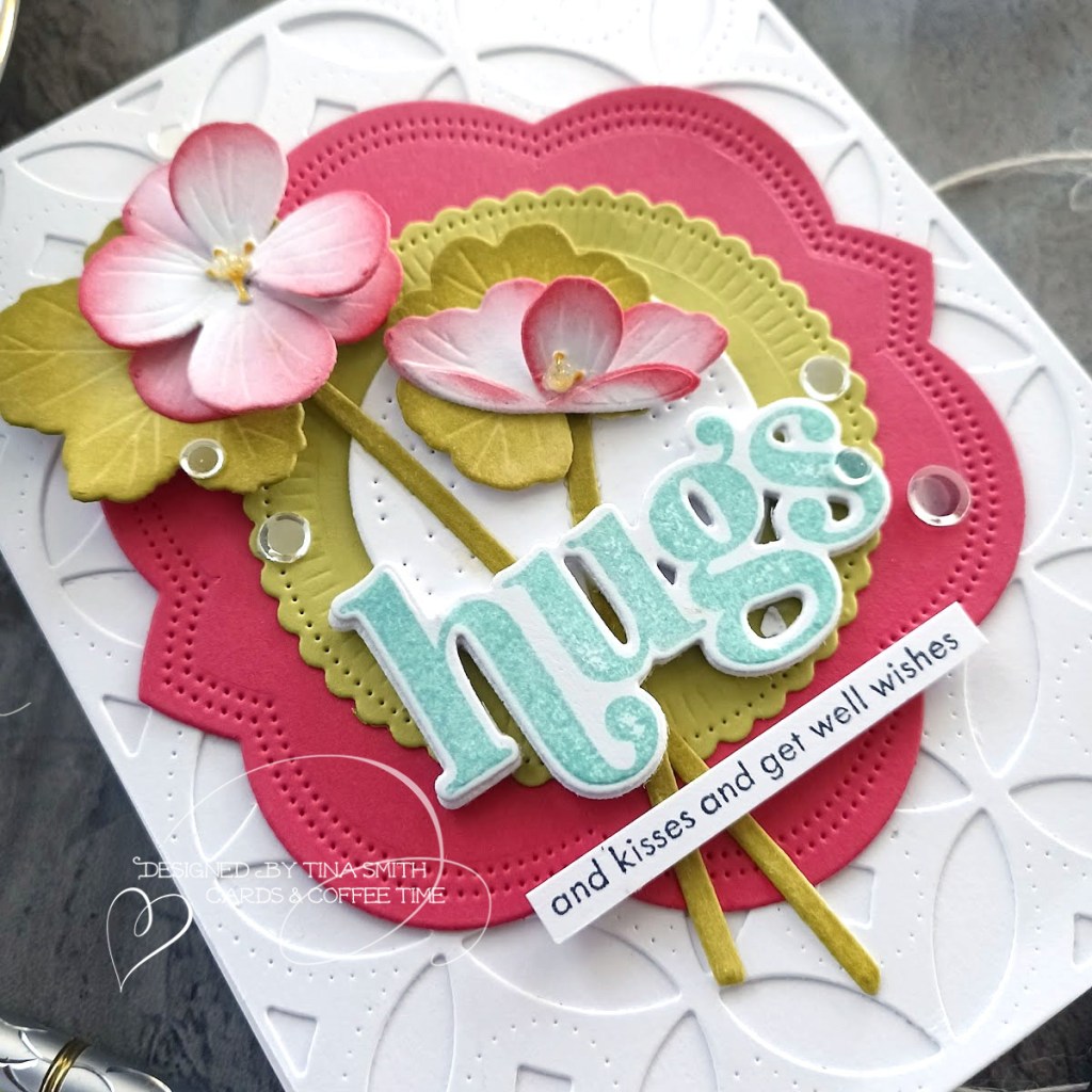 DIES: Lots of Hugs, Love to Layer: Decorative Brackets, Cover Plate: Decorative Circles, Into the Blooms: Geraniums