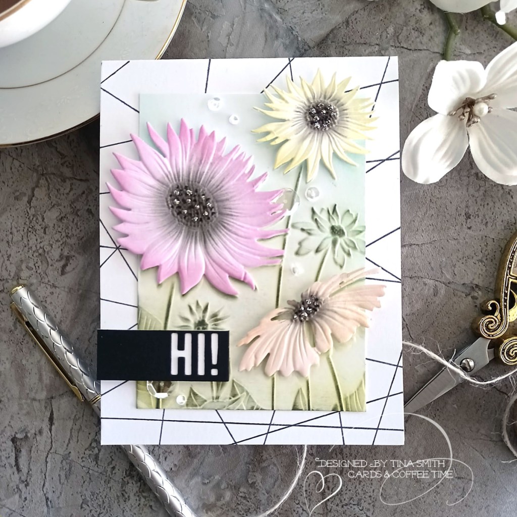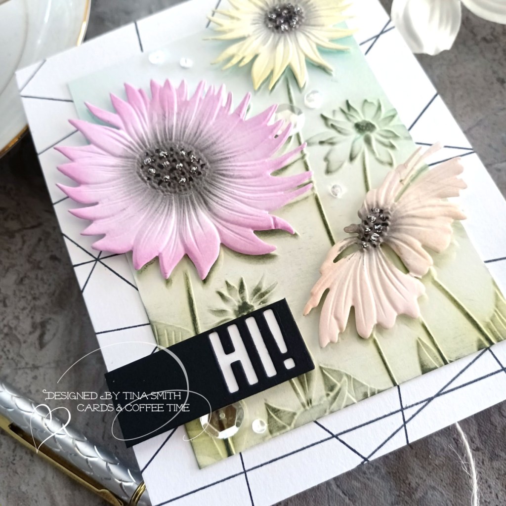 Hello Crafty Friends! I hope your having a great day! So much Detail in the @SimonSaysStamp Cut and Emboss Splendid Daisies Set. It’s new, part of the Simon Says Stamp OUT OF THIS WORLD Release. I stamped the Fractured Background on my A2 cardbase & created an ink blended background with a few new Mini Saturated Inks and layered the die cut Splendid Daisies. Adding my Hi sentiment using the Mini Slimline Windows Die. For How-To details watch the tutorial below:) I hope you like my projects!